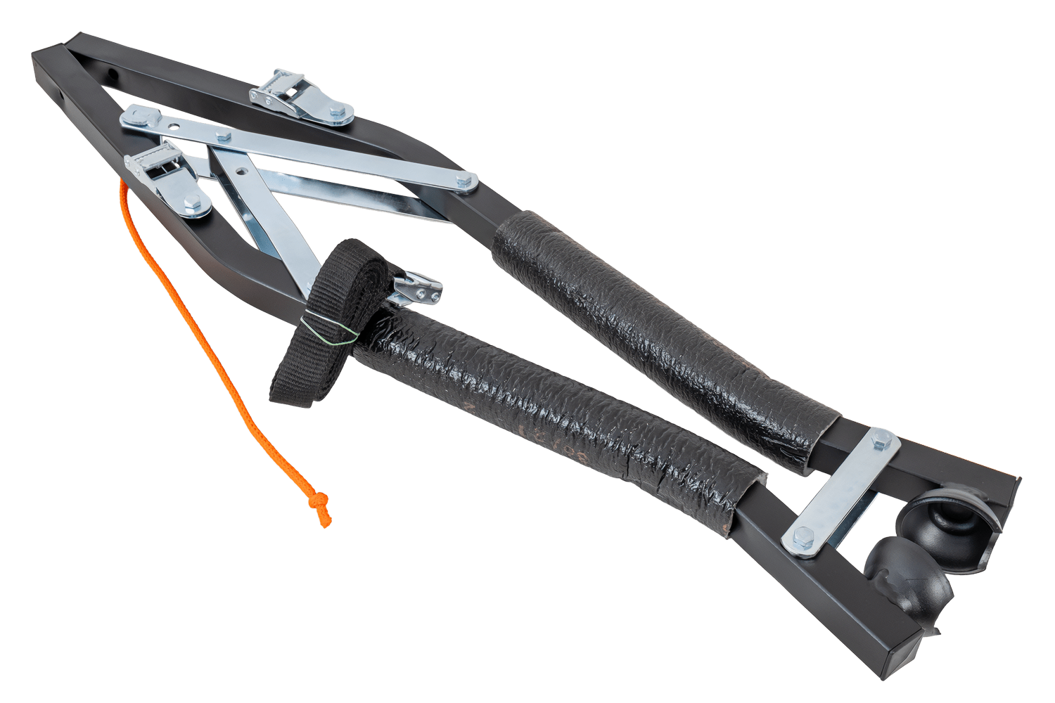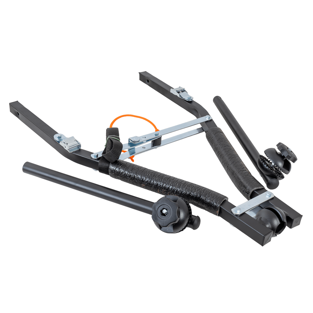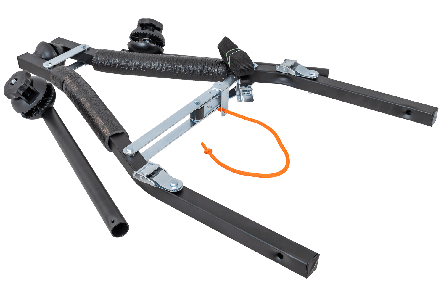 Ein großer Vorteil dieses Gepäckträgers ist sein durchdachtes Befestigungssystem. Jedes Fahrrad sitzt sicher in der dafür vorgesehenen Halterung , die mit einem robusten, verstellbaren Gummiband gesichert ist. So können Sie Fahrräder mit breiten und schmalen Rahmen effizient transportieren.
