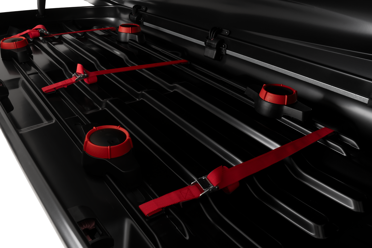 Im Set sind außerdem Textilbänder enthalten. zur Sicherung des Gepäcks (die Traxer-Box verfügt über spezielle Stellen zum Anbringen von Gurten).