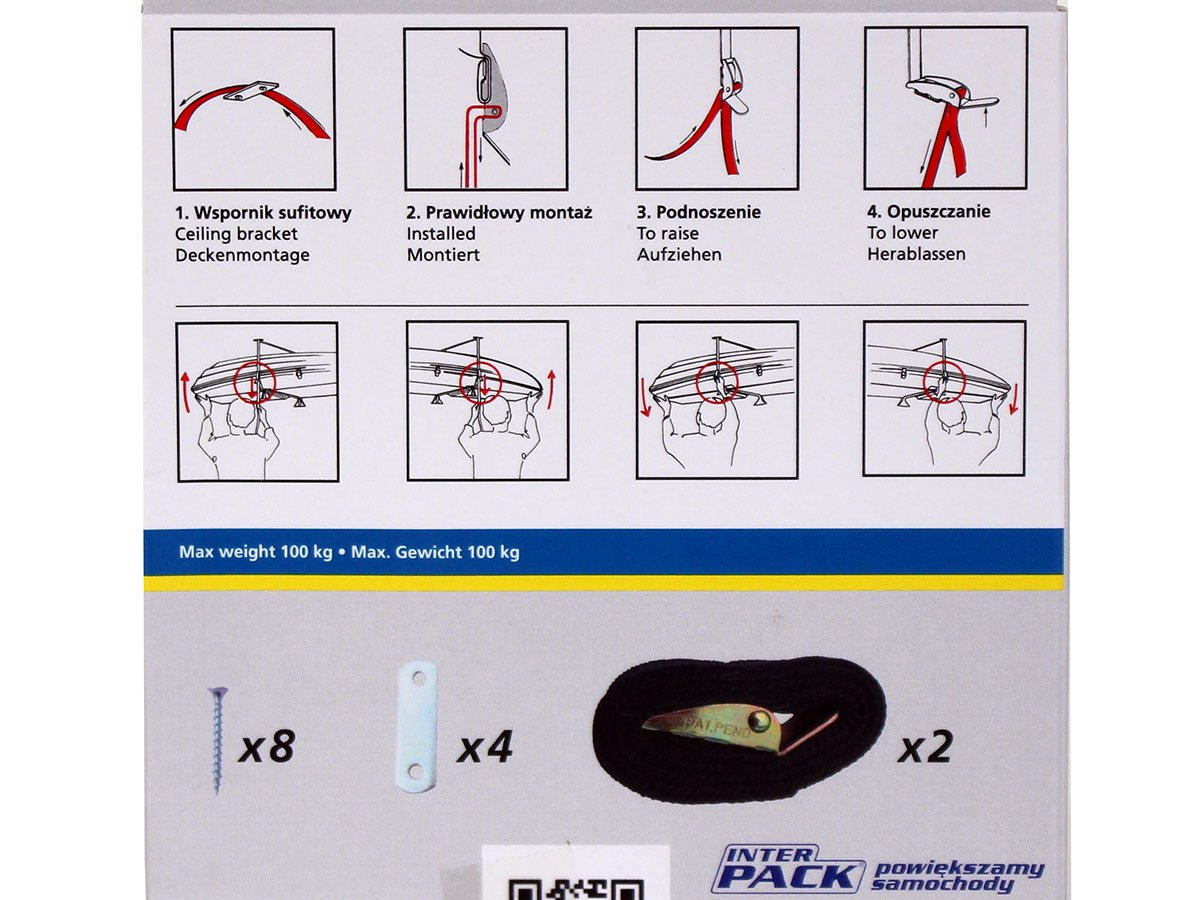 - Der Inter Pack Deckenhalter für die Dachbox ist die perfekte Lösung für alle, die den Platz unter der Decke ihrer Garage, ihres Hauswirtschaftsraums oder ihres Kellers optimal nutzen möchten.