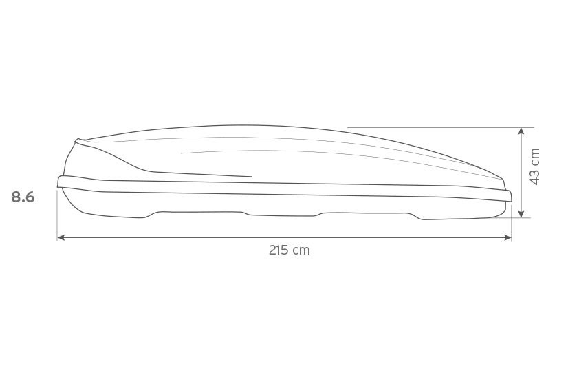 Der Traxer 8.6 bietet außergewöhnlich viel Laderaum. Sein Design kombiniert hohes Fassungsvermögen mit einer funktionalen Form , die Fahrgeräusche reduziert und den Kraftstoffverbrauch minimiert. Die Box besteht aus strapazierfähigem ABS- Kunststoff, ist UV-beständig und witterungsbeständig und gewährleistet so zuverlässigen Betrieb über viele Saisons. Der mit Metallstreifen verstärkte Boden und die entsprechende Profilierung erhöhen die Steifigkeit und gewährleisten Stabilität und Sicherheit der transportierten Ladung auch bei voller Beladung.