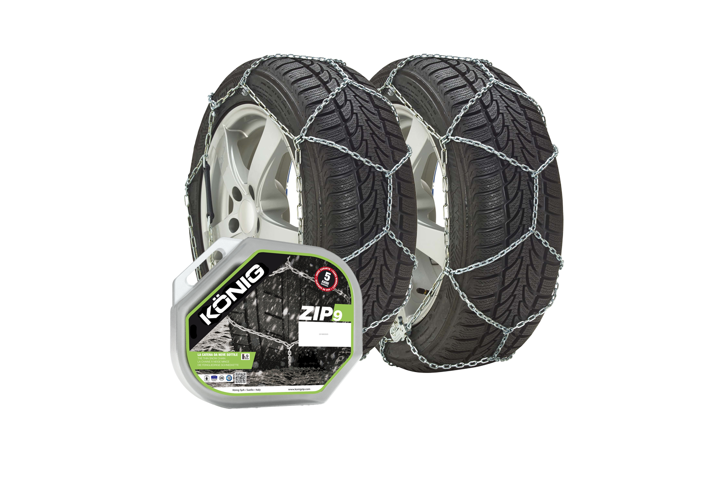 - Die König Zip 9 Schneeketten sind robuste Schneeketten aus gehärtetem Nickel-Mangan-Stahl. Langlebig und widerstandsfähig bieten sie auch unter härtesten Winterbedingungen zuverlässige Traktion. Sie erfüllen die TÜV/GS- und ÖNORM-Standards und sind somit