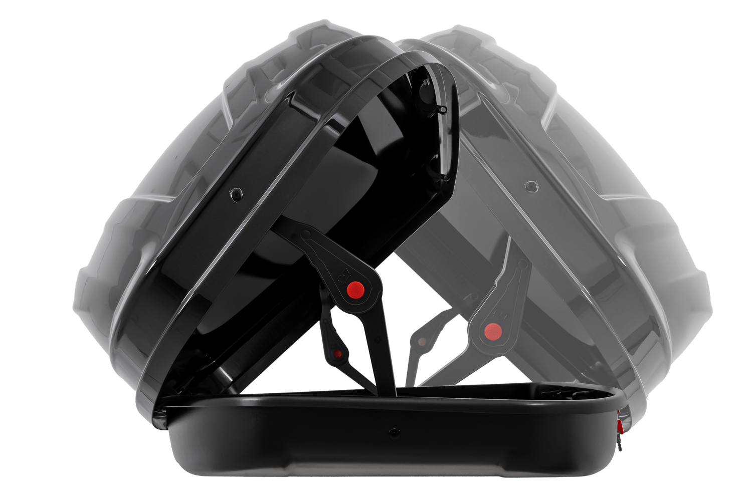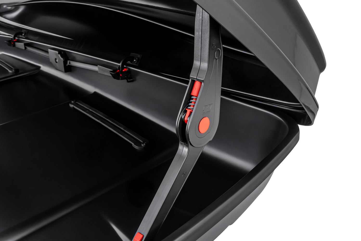 Dieses Modell besticht durch sein modernes Design und die robuste Konstruktion aus UV- und witterungsbeständigem Kunststoff . Es wiegt lediglich 13 kg und bietet eine maximale Tragfähigkeit von 75 kg . Der Deckel der Box wurde speziell profiliert, um den Luftwiderstand zu minimieren, den Komfort zu verbessern und den Kraftstoffverbrauch zu senken. Das beidseitige Öffnungssystem vereinfacht das Beladen und den Zugang zum Inneren der Box erheblich, unabhängig von der Fahrzeugseite. Ein zentrales Zweipunktverriegelungssystem garantiert ein hohes Maß an Sicherheit für transportierte Gegenstände. Eine zusätzliche Sicherheitsmaßnahme ist ein eingebautes System, das das Abziehen des Schlüssels aus dem Schloss nur bei ordnungsgemäß geschlossenem Deckel ermöglicht.Stella 481 ist mit einem Montagesystem ausgestattet Flexi Fit G2 , das sich an Dachbalken jeder Form anpasst.