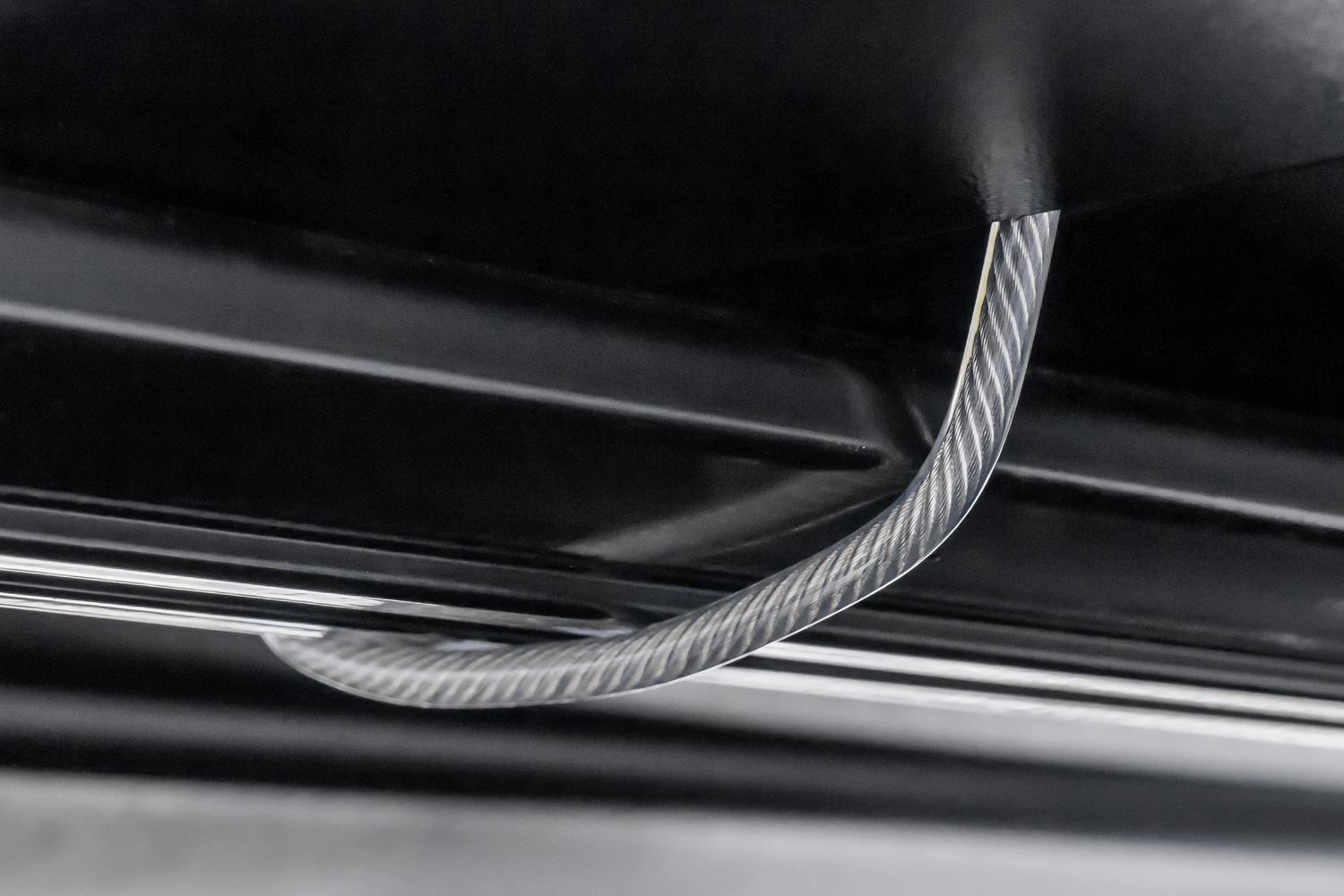 Das Montagesystem ermöglicht die Anpassung an den Abstand der Dachträgerstangen, der im Bereich von liegen sollte 62 cm runter 105 cm . Das Stahlkabel, das die Balken überspannt, ist mit einem haltbaren Material geflochten, das schützt das Grundgestell vor Kratzern.