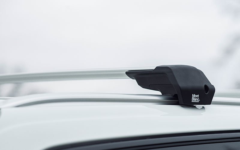 Das Set umfasst leise Mont Blanc Xplore-Aluminiumstangen, die mit einem T-Montagekanal ausgestattet sind – was eine schnelle und sichere Installation von Zubehör (z. B. Fahrradträgern, Skiträgern oder Dachboxen) ermöglicht – und Füße, die mit für bestimmte Autos entwickelten Schlössern gesichert sind.