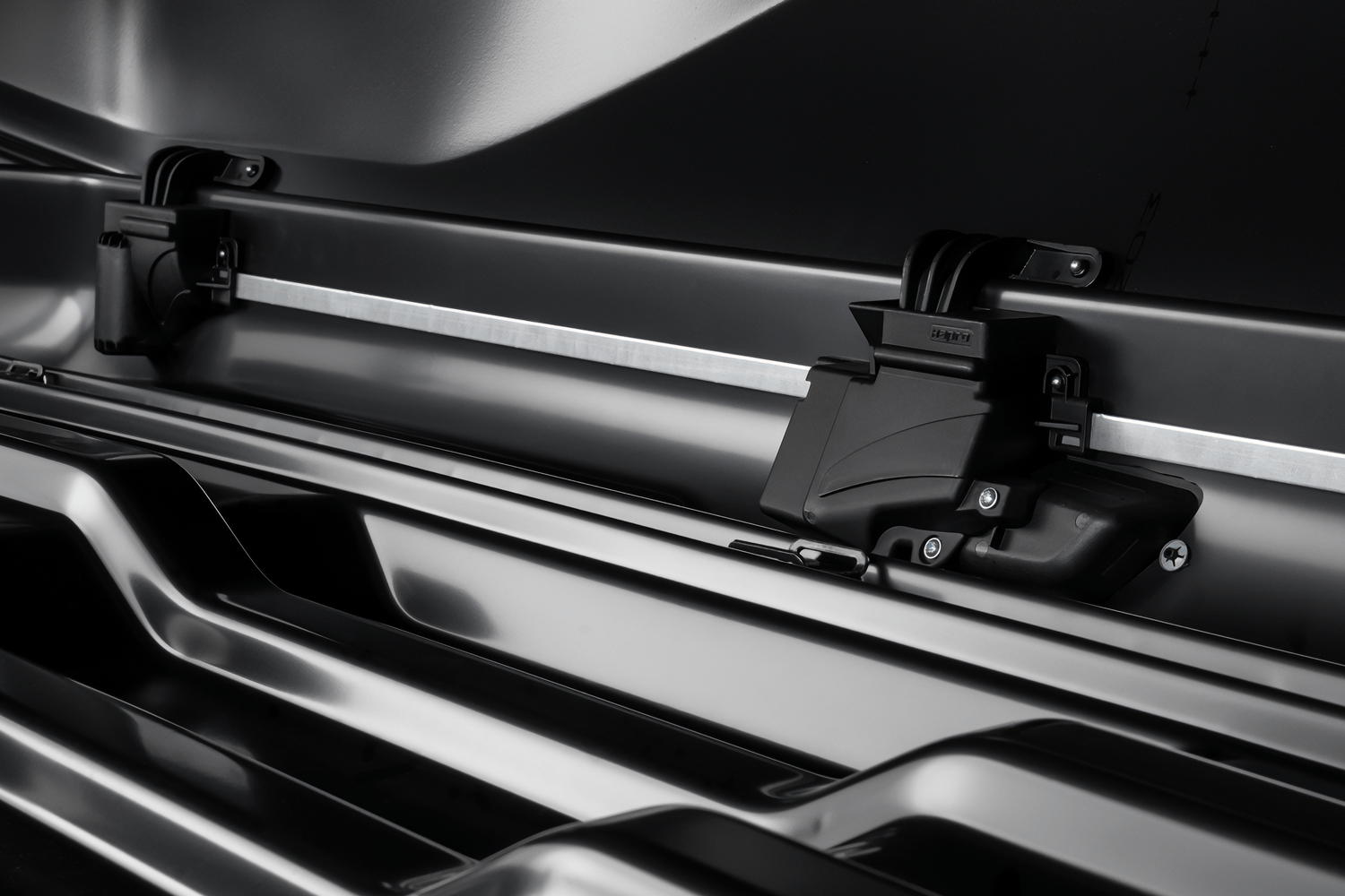 Montagesystem Premium-Passform ist ausgestattet mit Ein Dynamometer zeigt an, ob die Box korrekt auf den Dachbalken montiert ist. Ein charakteristisches Klickgeräusch ertönt, wenn der richtige Druck erreicht ist. In Kombination mit der einfachen und komfortablen Montage ist dies eines der besten Montagesysteme auf dem Markt. Geeignet für die Montage auf Balken: