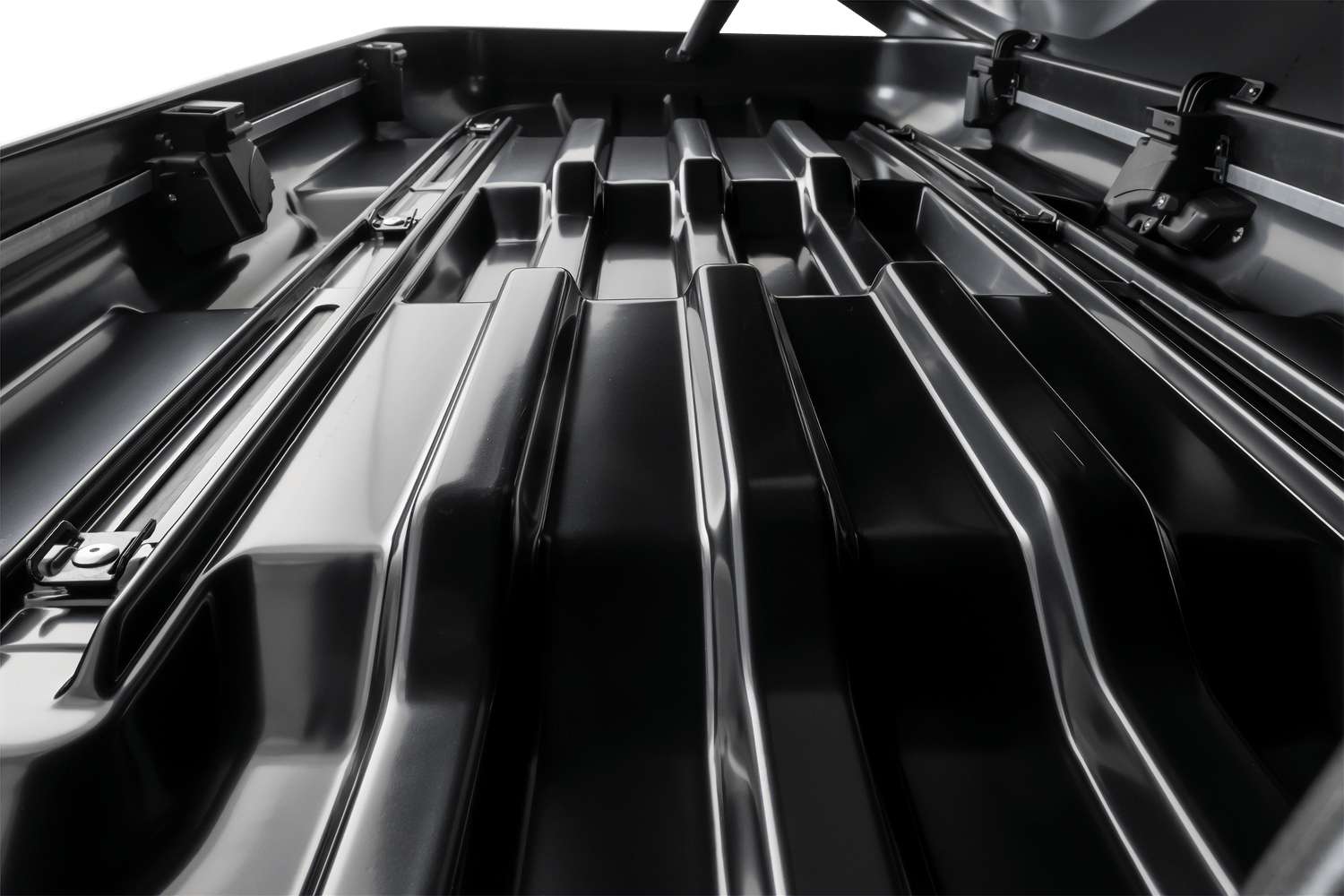 Mit einer Außenlänge von 191 cm bietet die Box problemlos Platz für Skier oder Snowboards bis zu einer Länge von 185 cm sowie für Koffer, Kinderwagen und Campingausrüstung. Das Fassungsvermögen von 420 Litern ermöglicht den Transport einer beträchtlichen Menge an Gepäck bei einfachem Zugriff. Eine Tragfähigkeit von 75 kg bei einem Eigengewicht von 17,5 kg sorgt für ein optimales Gleichgewicht zwischen Haltbarkeit und struktureller Effizienz.