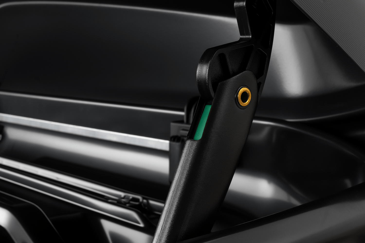Der Hersteller hat ein fortschrittliches Safe Guard-System implementiert, das das Gepäck vor unbeabsichtigtem Öffnen des Deckels schützt und signalisiert, wenn dieser ordnungsgemäß geschlossen ist. Eine Dreipunkt- Zentralverriegelung sorgt für einen stabilen und dichten Verschluss. Der Schlüssel lässt sich erst abziehen, wenn der Deckel vollständig geschlossen ist, was die Sicherheit zusätzlich erhöht. So kann der Fahrer beruhigt sein, da er weiß, dass sein Gepäck stets sicher ist.