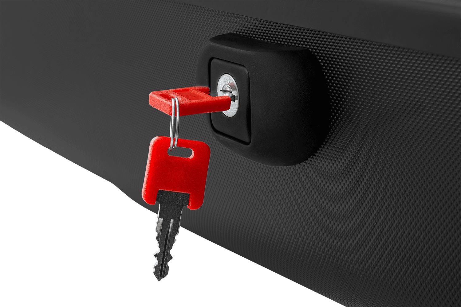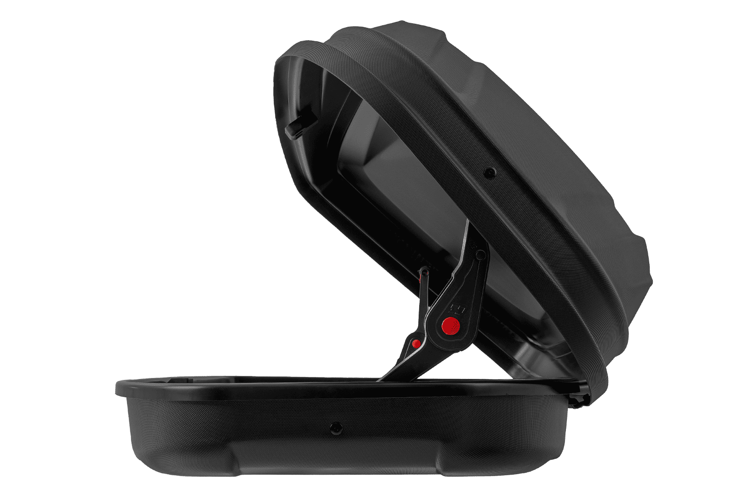 Die Box lässt sich von einer Seite öffnen und wird durch federbelastete Antriebe unterstützt, wodurch sich der Deckel leicht und stabil anheben lässt. Ein Zentralverriegelungssystem mit integriertem Knopf erhöht die Sicherheit Ihres Gepäcks. Die Dachbox besteht aus UV-beständigem Material, was die Haltbarkeit erhöht und dazu beiträgt, die Box viele Jahre lang in gutem Zustand zu halten.