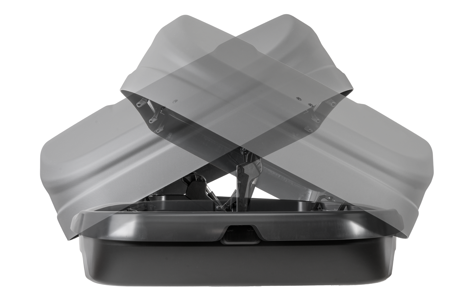 Dieses Modell besticht durch sein modernes Design und die robuste Konstruktion aus UV- und witterungsbeständigem ABS- Kunststoff . Es wiegt lediglich 16 kg und bietet eine maximale Tragfähigkeit von 75 kg . Der untere Teil der Box wurde speziell profiliert und zusätzlich mit zwei Metallstreifen verstärkt, um die Stabilität zu erhöhen. Das beidseitige Öffnungssystem vereinfacht das Beladen und den Zugriff auf die Box erheblich, unabhängig von der Fahrzeugseite. Ein zentrales Dreipunktverriegelungssystem garantiert ein hohes Maß an Sicherheit für transportierte Gegenstände. Eine zusätzliche Sicherheitsmaßnahme ist das eingebaute System, das das Abziehen des Schlüssels aus dem Schloss nur bei ordnungsgemäß geschlossenem Deckel ermöglicht.