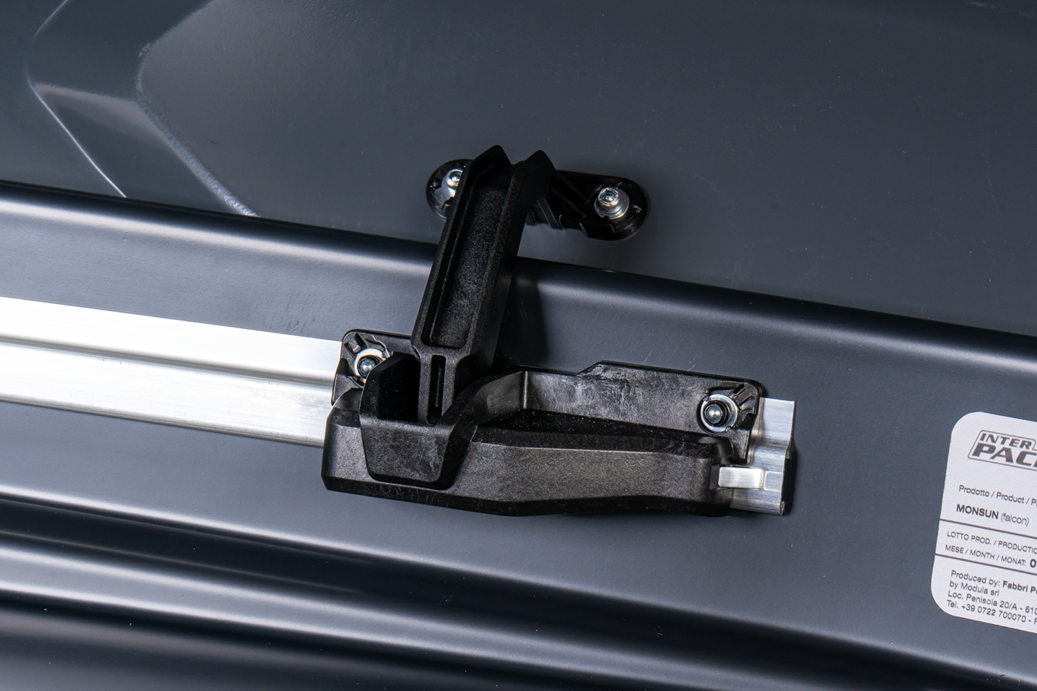 Das Montagesystem ist auf beweglichen Schienen montiert und ermöglicht die Anpassung an den Querträgerabstand des Dachträgers , der zwischen 46 cm und 115 cm liegen muss. Rapid Fit verfügt außerdem über einen Dynamometer , der signalisiert, wann die Box richtig befestigt ist und das Risiko einer Beschädigung des Grundträgers oder der Dachbox minimiert .