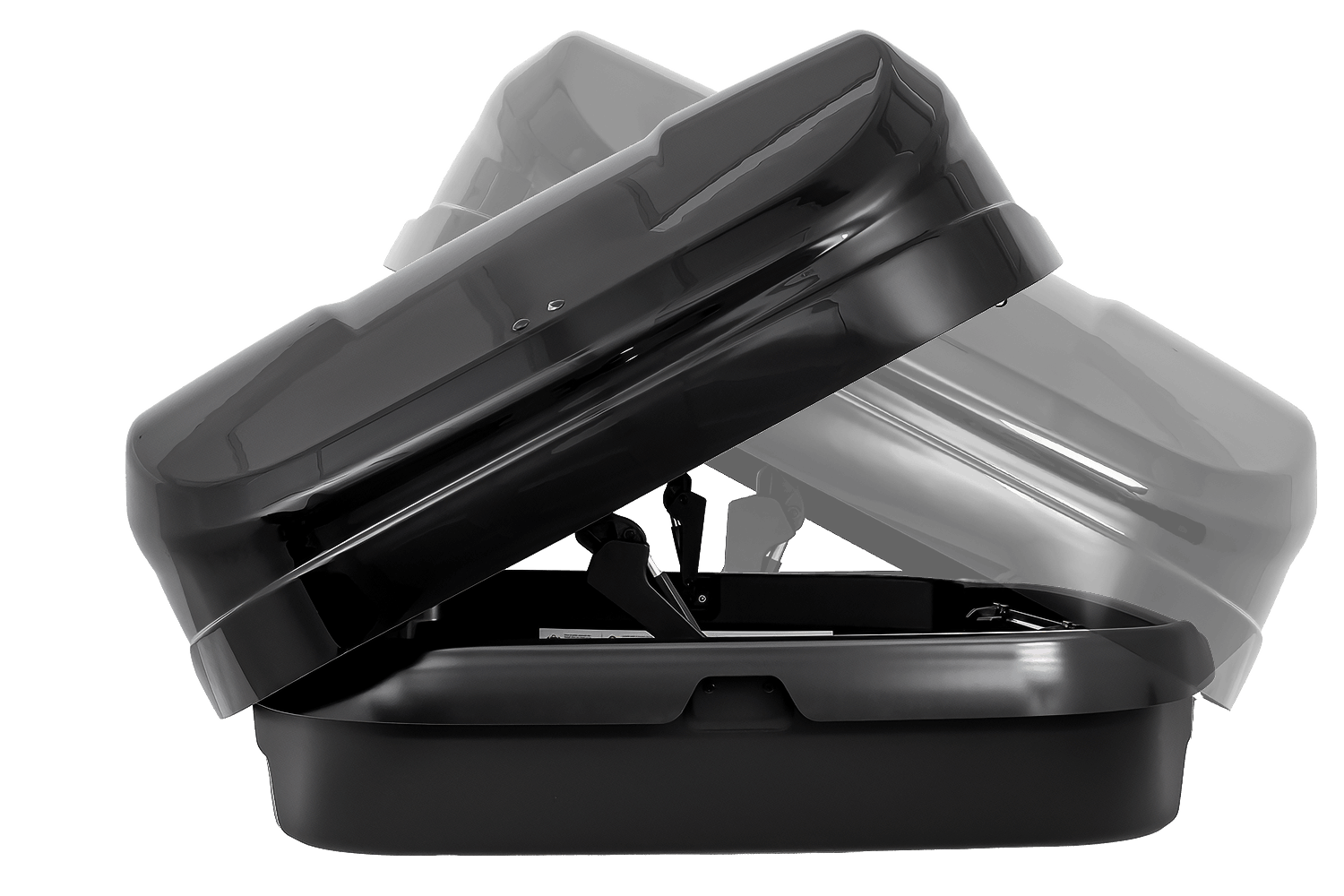 Dieses Modell besticht durch sein modernes Design und die robuste Konstruktion aus UV- und witterungsbeständigem ABS- Kunststoff . Es wiegt lediglich 16 kg und bietet eine maximale Tragfähigkeit von 75 kg . Der untere Teil der Box wurde speziell profiliert und zusätzlich mit zwei Metallstreifen verstärkt, um die Stabilität zu erhöhen. Das beidseitige Öffnungssystem vereinfacht das Beladen und den Zugriff auf die Box erheblich, unabhängig von der Fahrzeugseite. Ein zentrales Dreipunktverriegelungssystem garantiert ein hohes Maß an Sicherheit für transportierte Gegenstände. Eine zusätzliche Sicherheitsmaßnahme ist das eingebaute System, das das Abziehen des Schlüssels aus dem Schloss nur bei ordnungsgemäß geschlossenem Deckel ermöglicht.