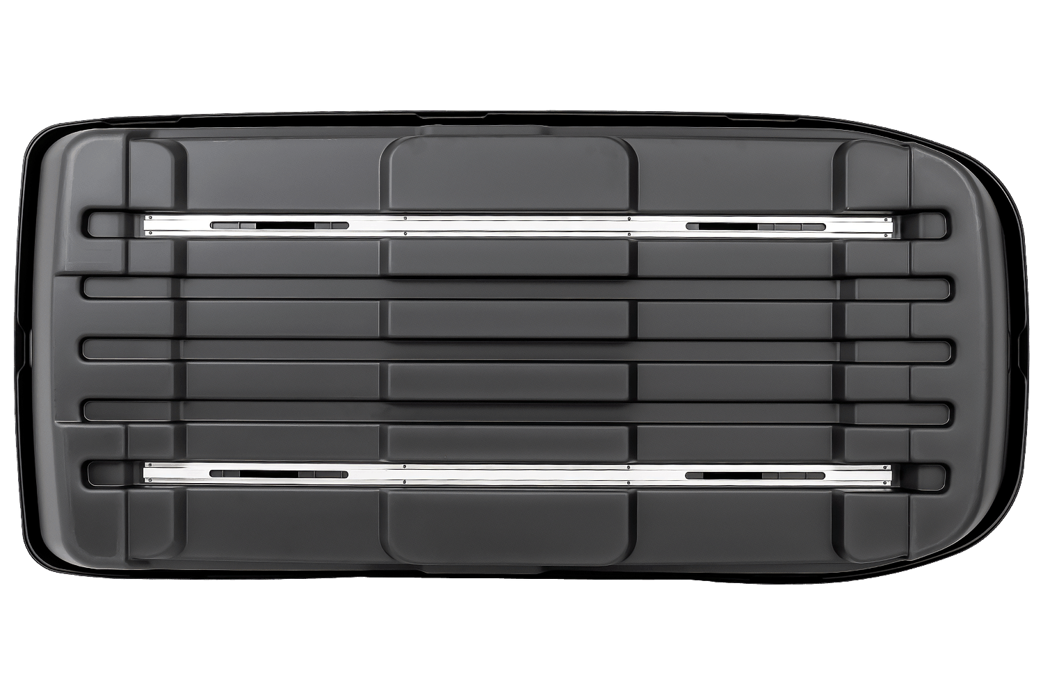 Das Rapid Fit -Montagesystem gewährleistet eine schnelle, sichere und einfache Installation der Box auf dem Dachgepäckträger. Es passt auf alle Arten von Stangen : rechteckig, oval und flügelförmig.