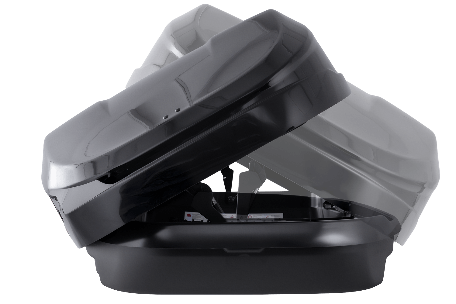 Dieses Modell besticht durch sein modernes Design und die robuste Konstruktion aus UV- und witterungsbeständigem ABS- Kunststoff. Es wiegt lediglich 18,4 kg und bietet eine maximale Tragfähigkeit von 75 kg . Der untere Teil der Box ist speziell profiliert und zusätzlich mit zwei Metallstreifen verstärkt , um die Stabilität zu erhöhen. Das beidseitige Öffnungssystem vereinfacht das Beladen und den Zugriff auf die Box erheblich, unabhängig von der Fahrzeugseite. Ein zentrales Dreipunktverriegelungssystem garantiert hohe Sicherheit für transportierte Gegenstände. Eine zusätzliche Sicherheitsmaßnahme ist das eingebaute System, das das Abziehen des Schlüssels aus dem Schloss nur bei ordnungsgemäß geschlossenem Deckel ermöglicht.