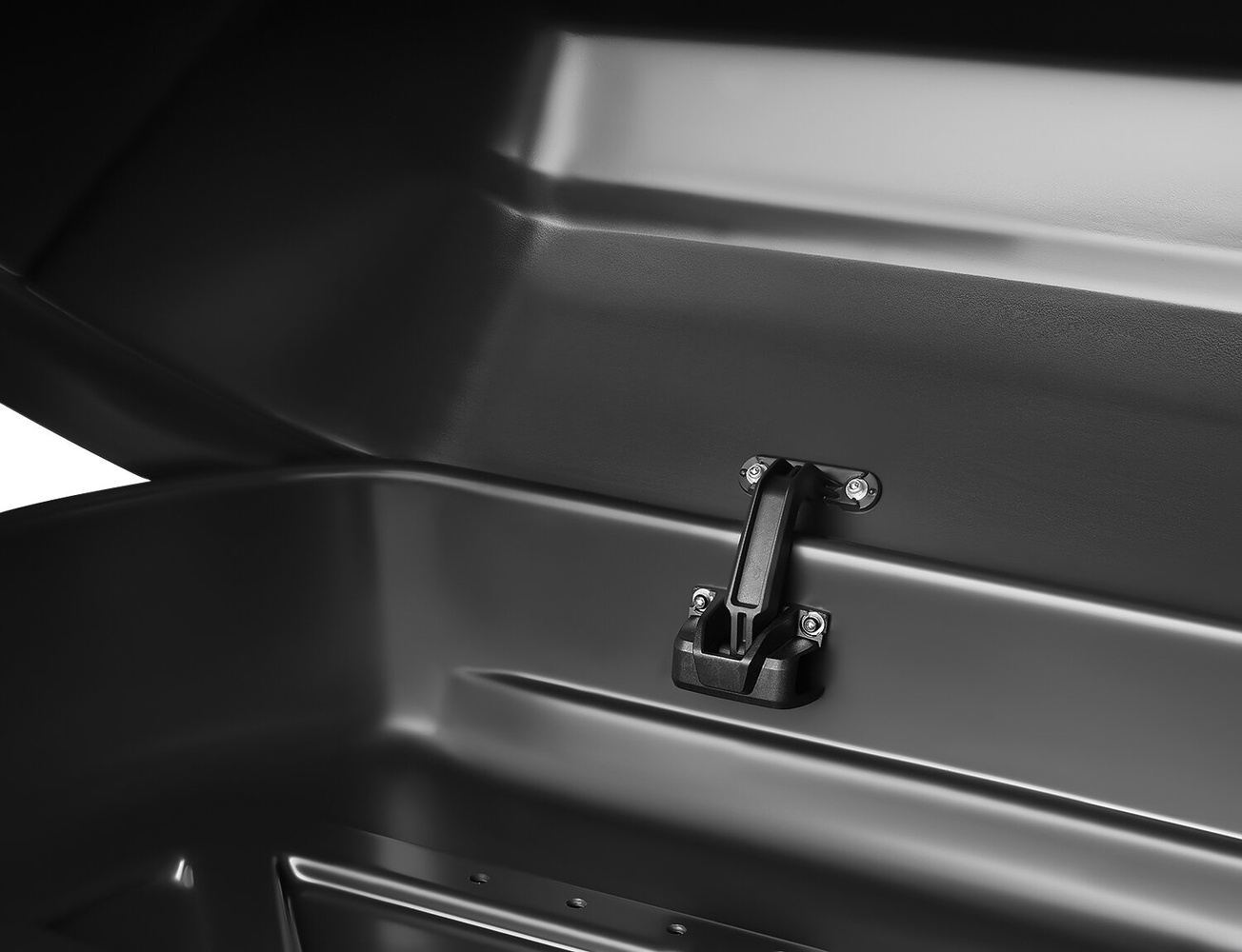Die Sicherheit der transportierten Gegenstände ist gewährleistet ein zentrales Dreipunktverriegelungssystem sowie ein System, das verhindert, dass der Schlüssel aus dem Schloss gezogen wird, wenn der Deckel nicht richtig geschlossen ist.