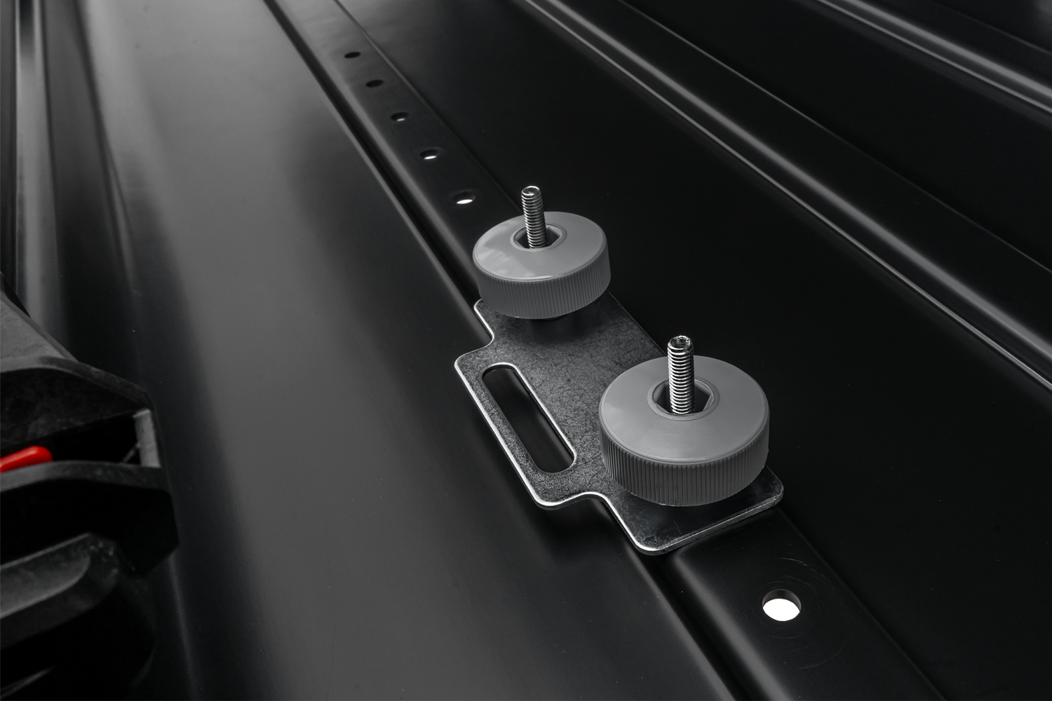 Das Montagesystem ermöglicht die Anpassung an den Abstand der Dachträgerstangen, der im Bereich von liegen sollte 46 cm runter 123 cm.
