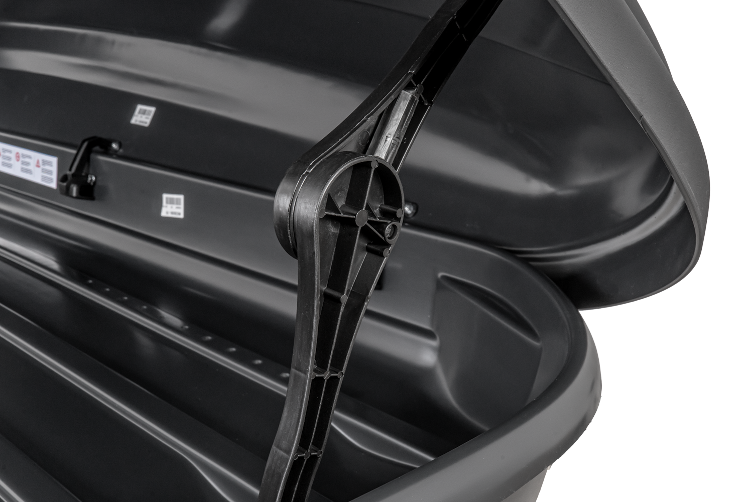 Die Dachbox besteht aus strapazierfähigem Kunststoff , der UV-beständig und witterungsbeständig ist. Trotz des großen Fassungsvermögens wiegt die gesamte Einheit nur 17 kg und bietet eine maximale Tragkraft von 75 kg . Die stromlinienförmige Abdeckung reduziert den Luftwiderstand und sorgt so für mehr Fahrkomfort und geringeren Kraftstoffverbrauch.
