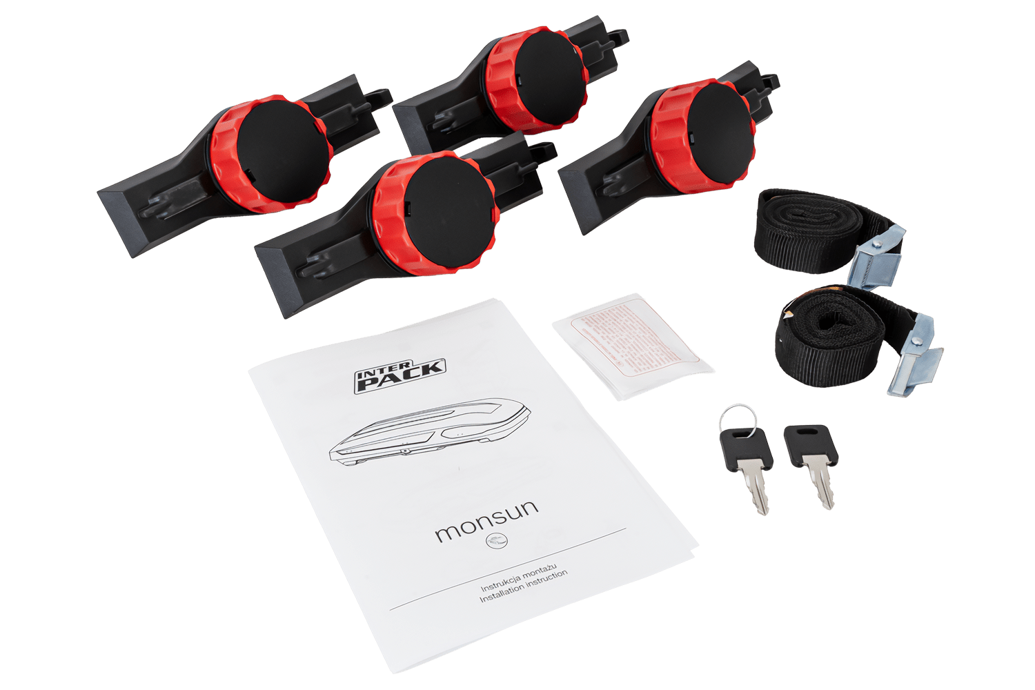 Zum Set gehören außerdem Textilgurte zur Sicherung des Gepäcks während des Transports (die Monsun-Box verfügt über spezielle Befestigungsmöglichkeiten für Gurte).