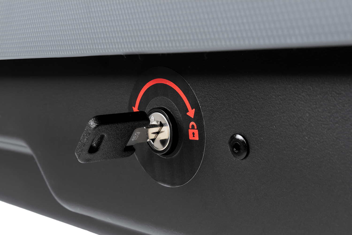 Dieses Modell besticht durch sein modernes Design und die robuste Konstruktion aus UV- und witterungsbeständigem ABS- Kunststoff . Es wiegt lediglich 18,4 kg und bietet eine maximale Tragfähigkeit von 75 kg . Der untere Teil der Box wurde speziell profiliert und zusätzlich mit zwei Metallstreifen verstärkt , um die Stabilität zu erhöhen. Das beidseitige Öffnungssystem vereinfacht das Beladen und den Zugriff auf die Box erheblich, unabhängig von der Fahrzeugseite. Ein zentrales Dreipunktverriegelungssystem garantiert ein hohes Maß an Sicherheit für transportierte Gegenstände. Eine zusätzliche Sicherheitsmaßnahme ist das eingebaute System, das das Abziehen des Schlüssels aus dem Schloss nur bei ordnungsgemäß geschlossenem Deckel ermöglicht.