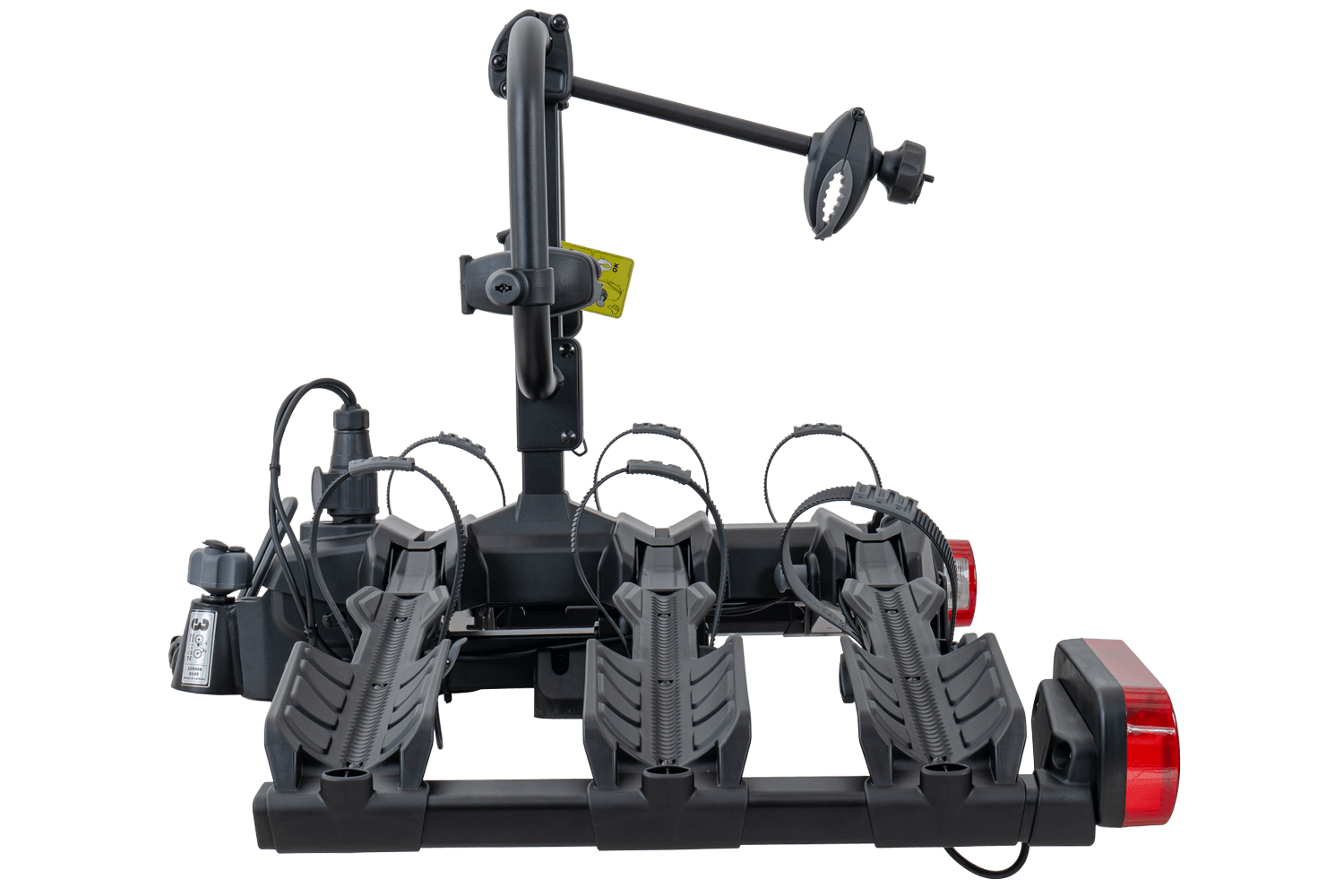 Der Spider 3 Lite schützt Ihre Fahrräder. Jedes Halterungssystem ist mit Gummi beschichtet, um Kratzer an Rahmen und Felgen zu vermeiden. Der Träger verfügt außerdem über eine 13-polige Lichtleiste sowie einen Platz für ein zusätzliches Nummernschild.