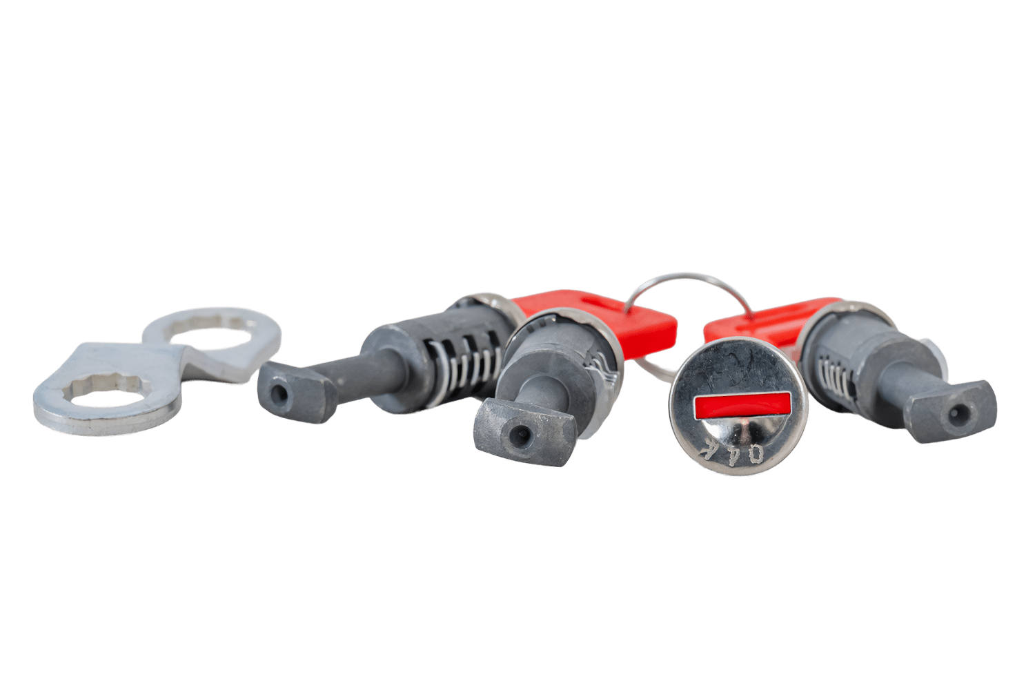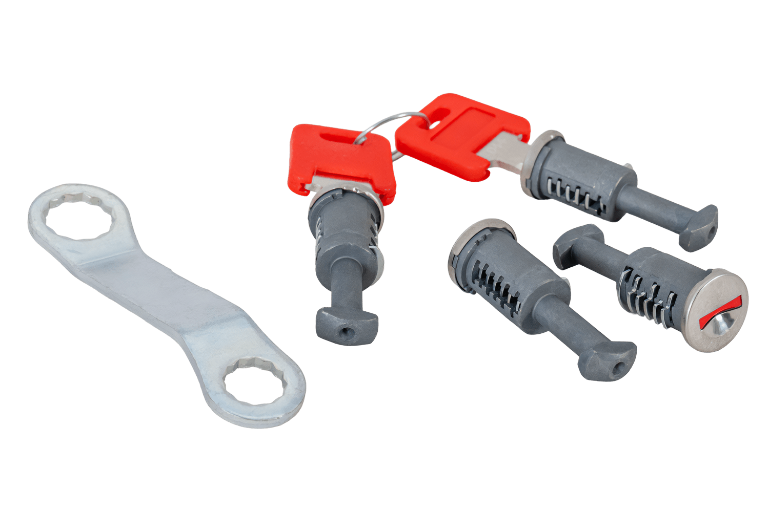 Set bestehend aus 4 Schlössern und 2 Schlüsseln mit gleicher Nummer für G3-Gepäckträger der Pacific-Linie.