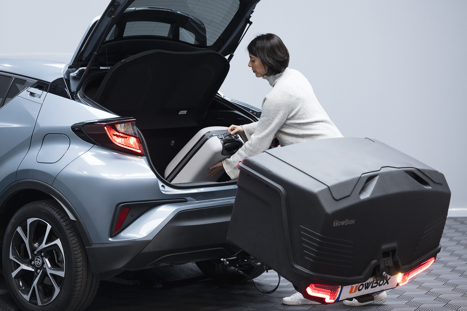 Das TowBox Alpha-Modell verfügt über eine vollintegrierte LED-Rückleuchte mit dynamischen Blinkern , was die Sichtbarkeit des Fahrzeugs erhöht und die Fahrsicherheit verbessert . Dank des klappbaren Radsystems lässt sich die Box einfach an der Anhängerkupplung montieren und außerhalb des Fahrzeugs bewegen. Die verbesserte Aerodynamik sorgt für ein stabiles, leises Fahrgefühl und einen geringeren Kraftstoff- bzw. Energieverbrauch im Vergleich zu herkömmlichen Dachboxen.