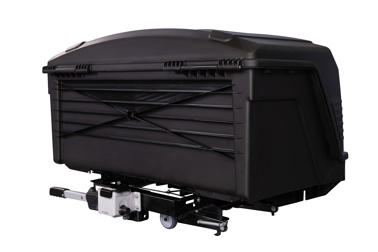 - Klappbares Radsystem zur einfachen Montage an der Anhängerkupplung und zum Transport des Gepäckträgers außerhalb des Fahrzeugs