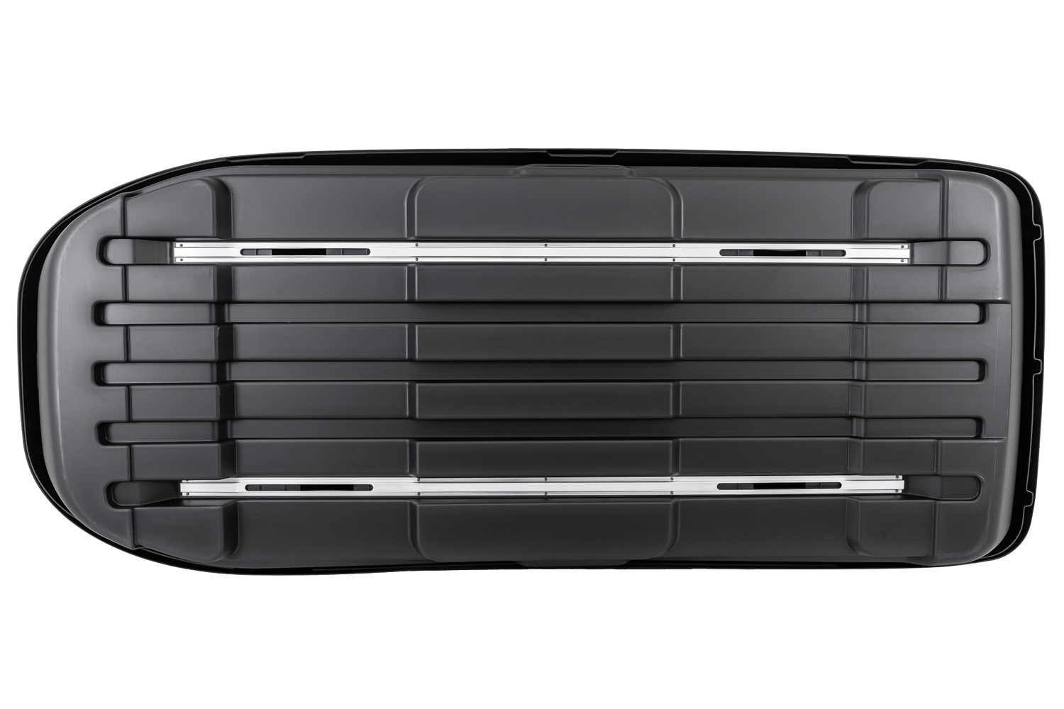 Die stromlinienförmige Silhouette der Box maximiert den verfügbaren Innenraum – 185 × 70 × 34 cm . Befestigungsgurte sind im Lieferumfang enthalten.