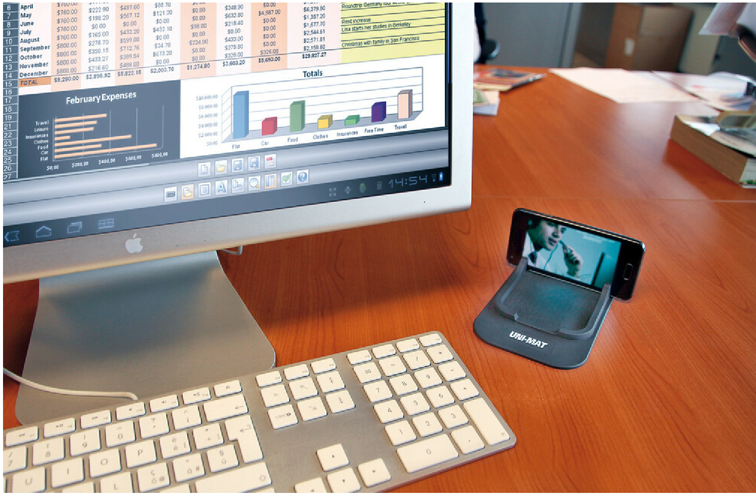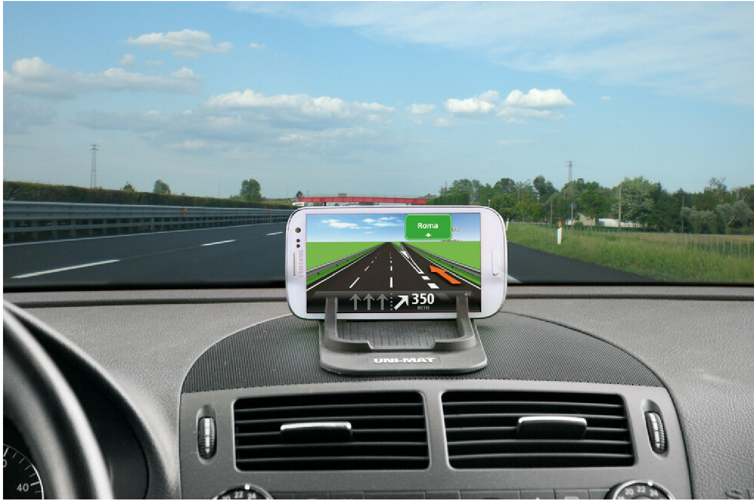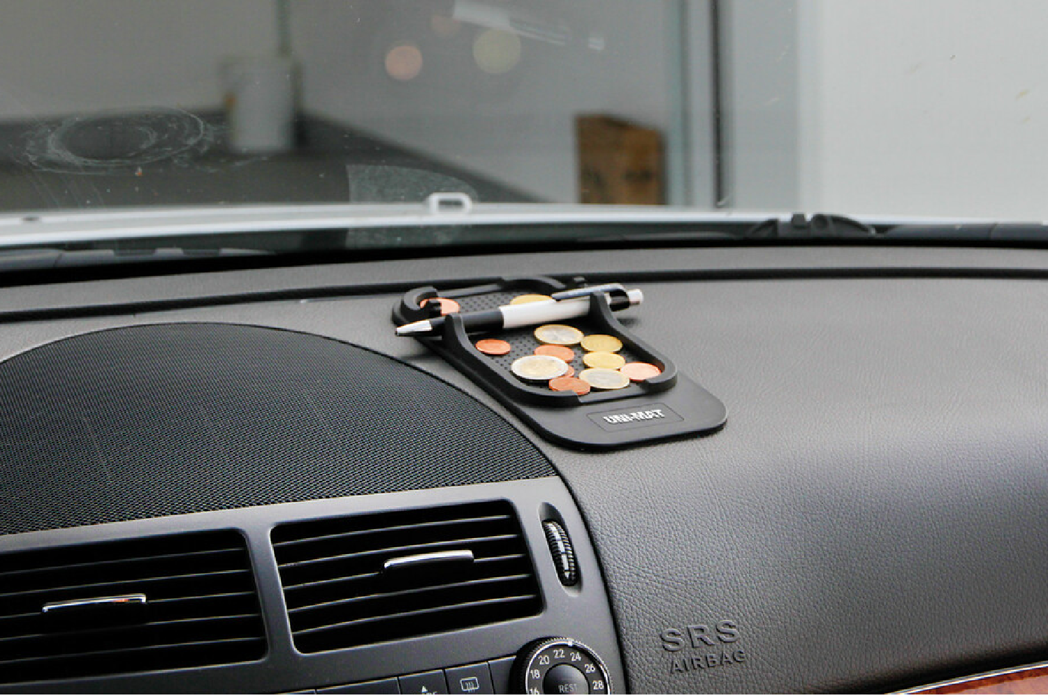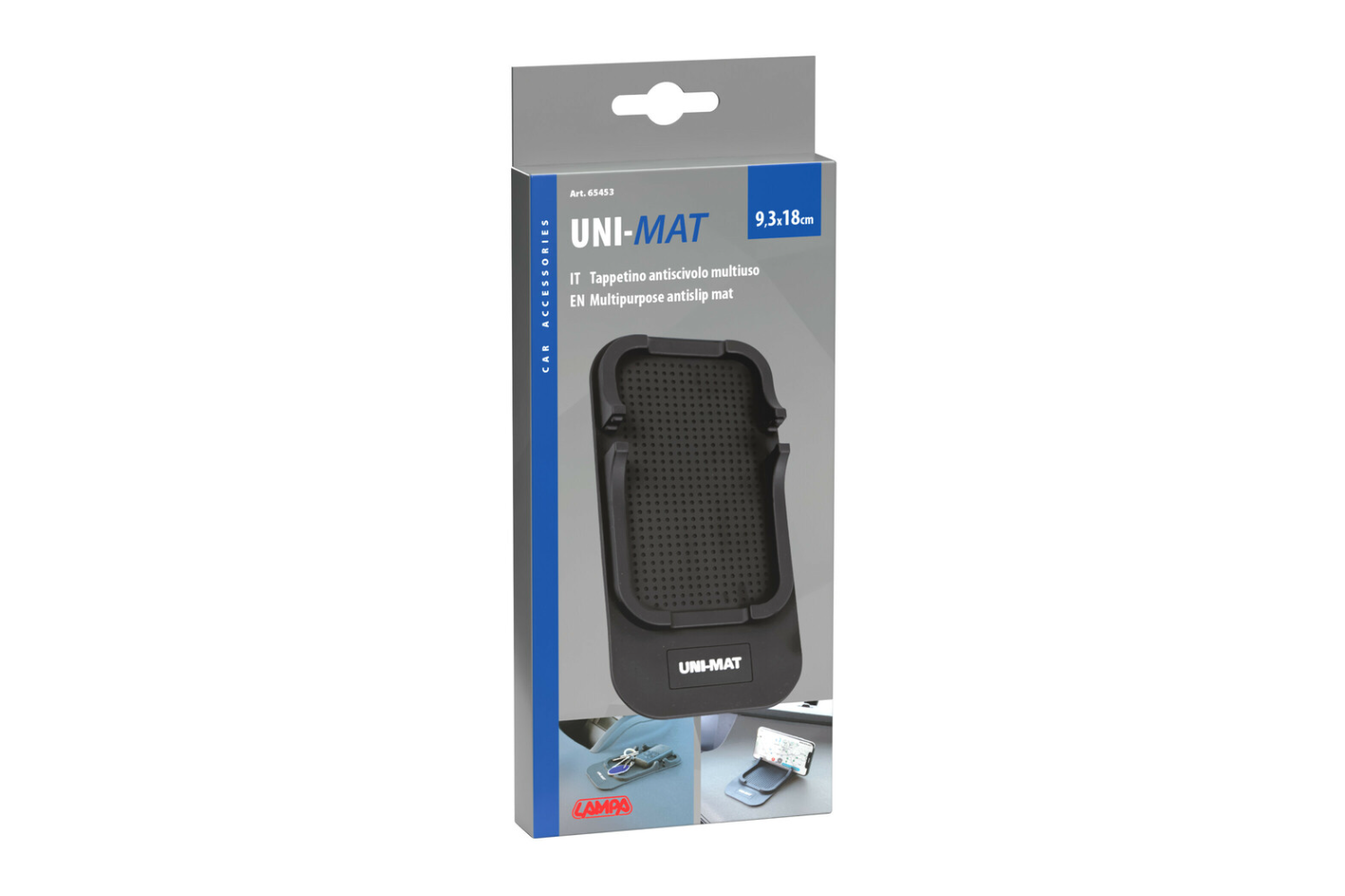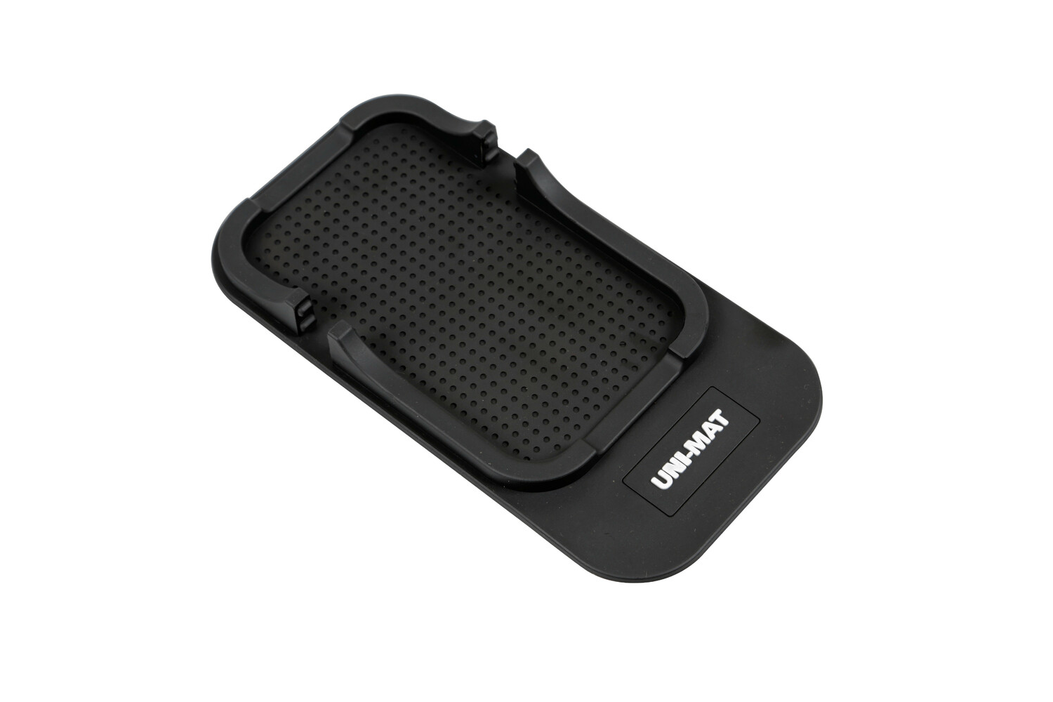 • Die rutschfeste Matte Uni-Mat (185 x 95 mm) eignet sich für Autos, Wohnungen und Büros. Sie stabilisiert kleine Gegenstände wie Handys, Münzen und Schlüssel und kann dank ihrer geriffelten Oberfläche auch als Handyhalterung verwendet werden. Sie benötigt