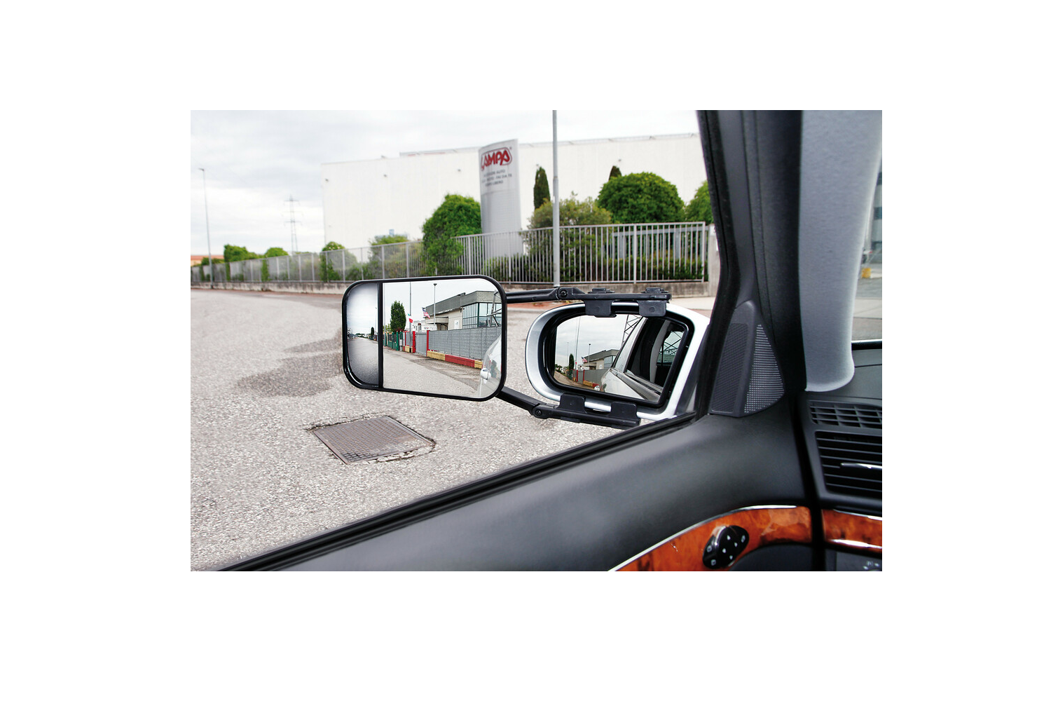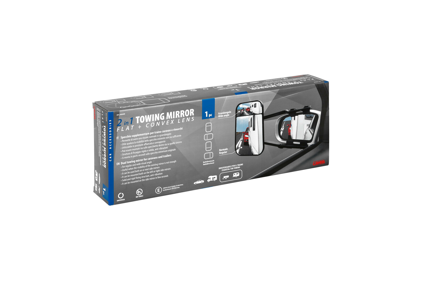 Der Anhängerspiegel mit Flach- und Konvexlinse ist ein universeller Zubehörspiegel, der am werkseitigen Außenspiegel montiert wird und das Sichtfeld beim Anhängerbetrieb deutlich erweitert. Die Doppellinse ermöglicht präzise Beobachtung und einen größeren Betrachtungswinkel, während die vollständige Verstellbarkeit optimale Sichtwinkel gewährleistet. Das Klemmbefestigungssystem mit Leiterbändern passt an die meisten Spiegel und fixiert den Spiegel sicher am Gehäuse, wodurch Vibrationen während der Fahrt reduziert werden. Der Spiegel ist universell einsetzbar – er kann sowohl links als auch rechts am Fahrzeug montiert werden. Das Produkt ist ECE R46-geprüft .