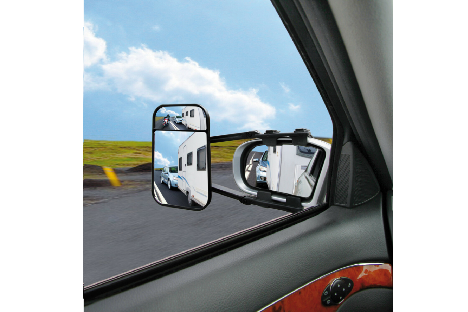 • Dieser Anhängerspiegel, der am Originalspiegel befestigt wird, vergrößert das Sichtfeld beim Fahren mit Anhänger. Zwei Linsen (flach und konvex) reduzieren den toten Winkel und erleichtern Spurwechsel, Rückwärtsfahren und Einparken. Schnellmontage mit Kle