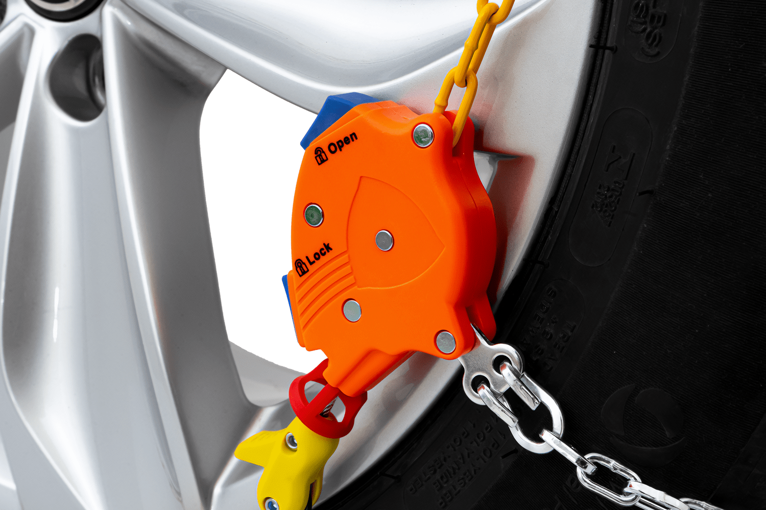Das automatische Spannsystem macht ein Anhalten nach wenigen Metern zum Nachspannen der Kette überflüssig – die Spannung passt sich während der Fahrt automatisch an . Dadurch sind Montage und Demontage besonders schnell und intuitiv, selbst bei widrigen Wetterbedingungen.