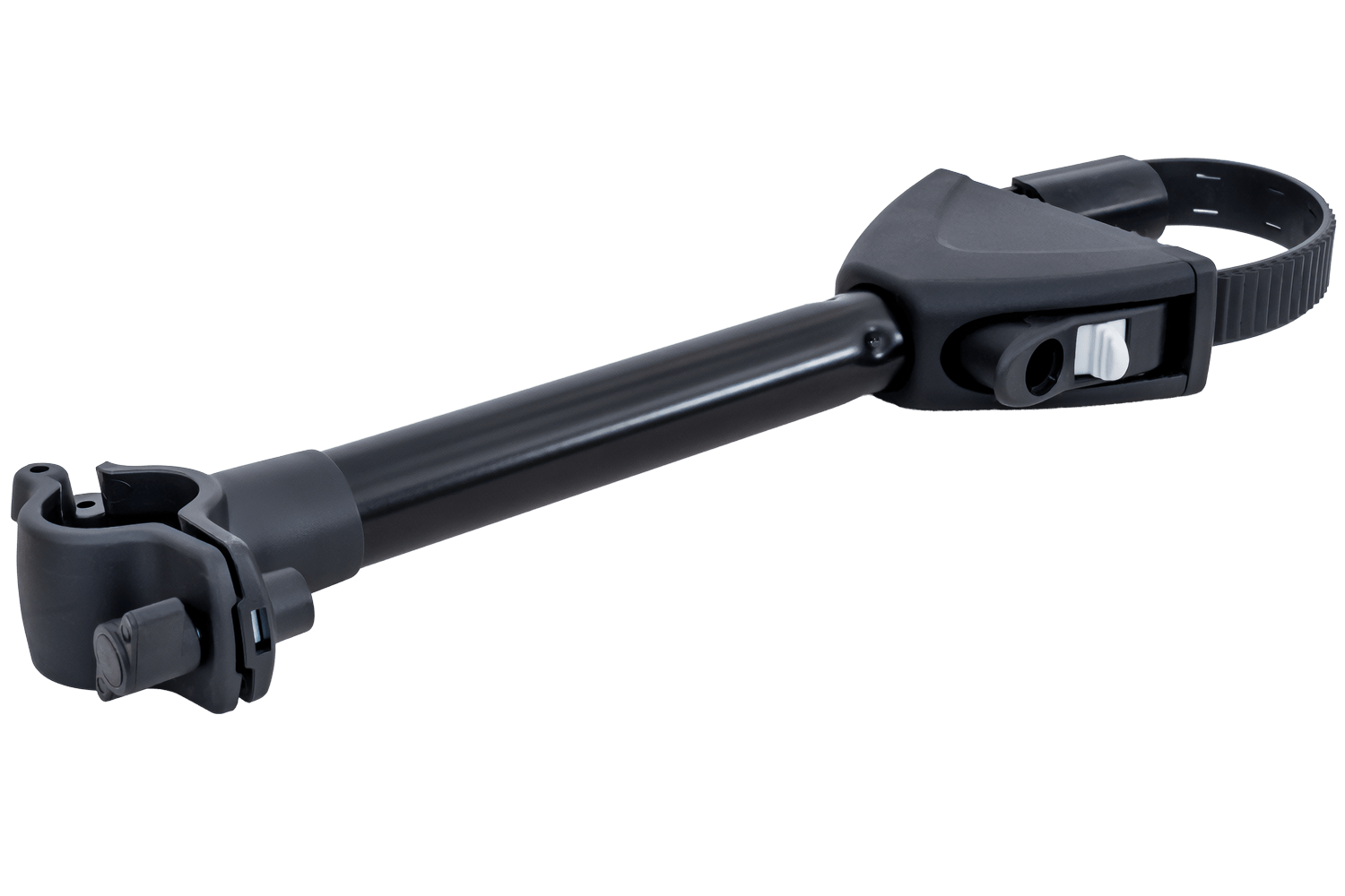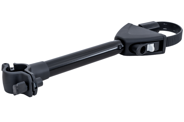Schwarze mittlere Halterung (zur Befestigung am Rahmen des zweiten Fahrrads) für Atera Strada Sport Anhängerkupplungs-Fahrradplattformen.