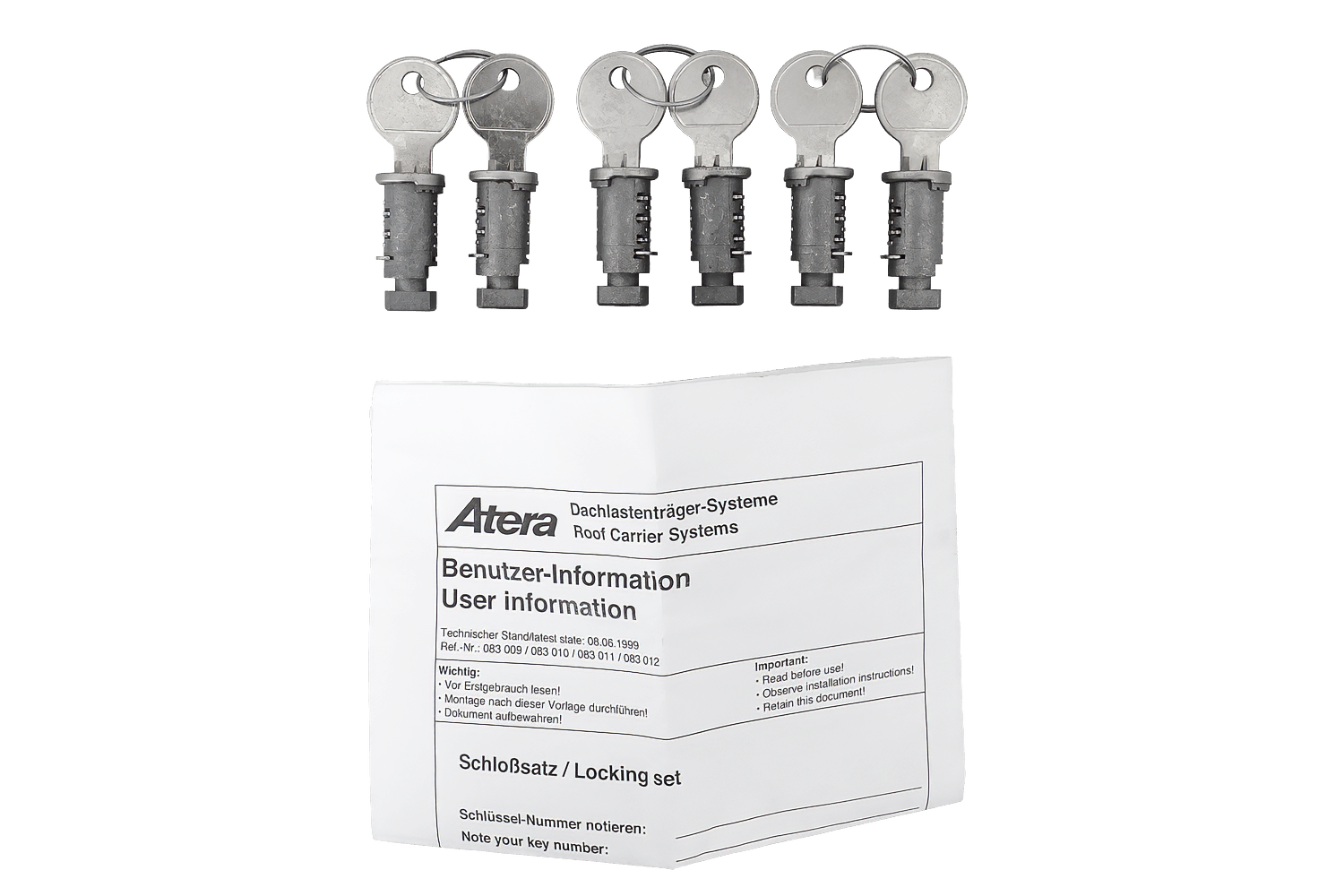 Atera Schloss- und Schlüsselset (6-teilig + 2 Schlüssel) 083011