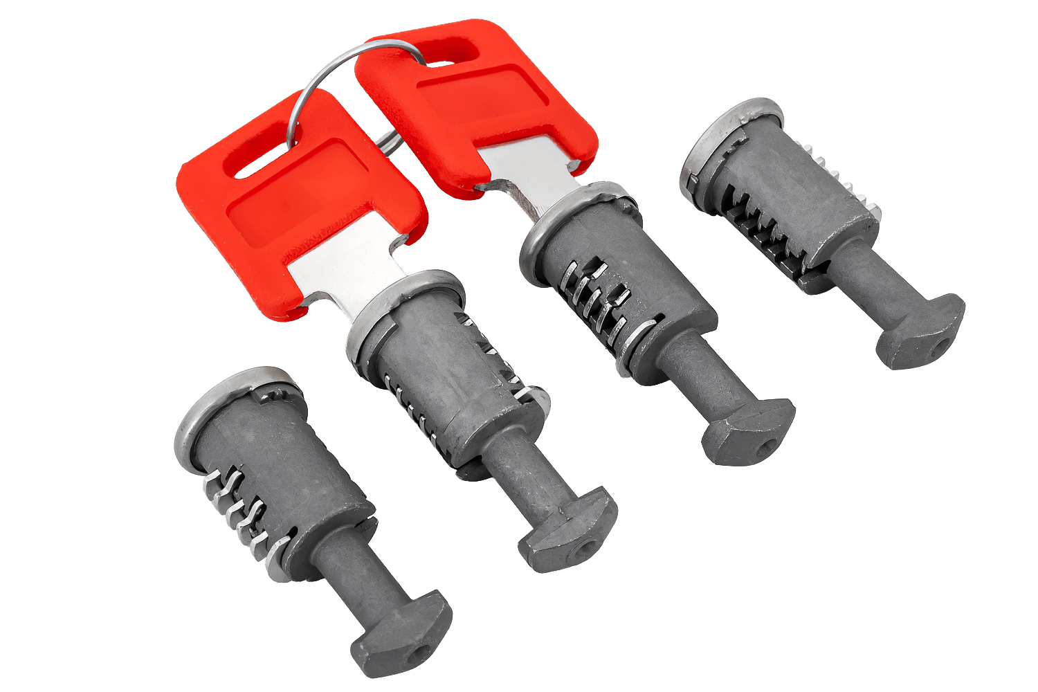 Das CL-Line G3-Basisgestell-Verriegelungsset umfasst vier Schlösser und zwei Schlüssel und sichert das System wirksam gegen unbefugten Zugriff. Das Set schützt alle Befestigungspunkte und erhöht so die Sicherheit der transportierten Güter.