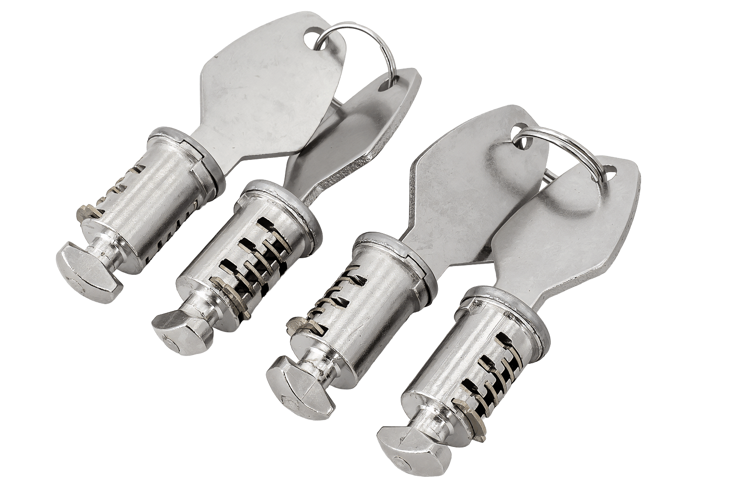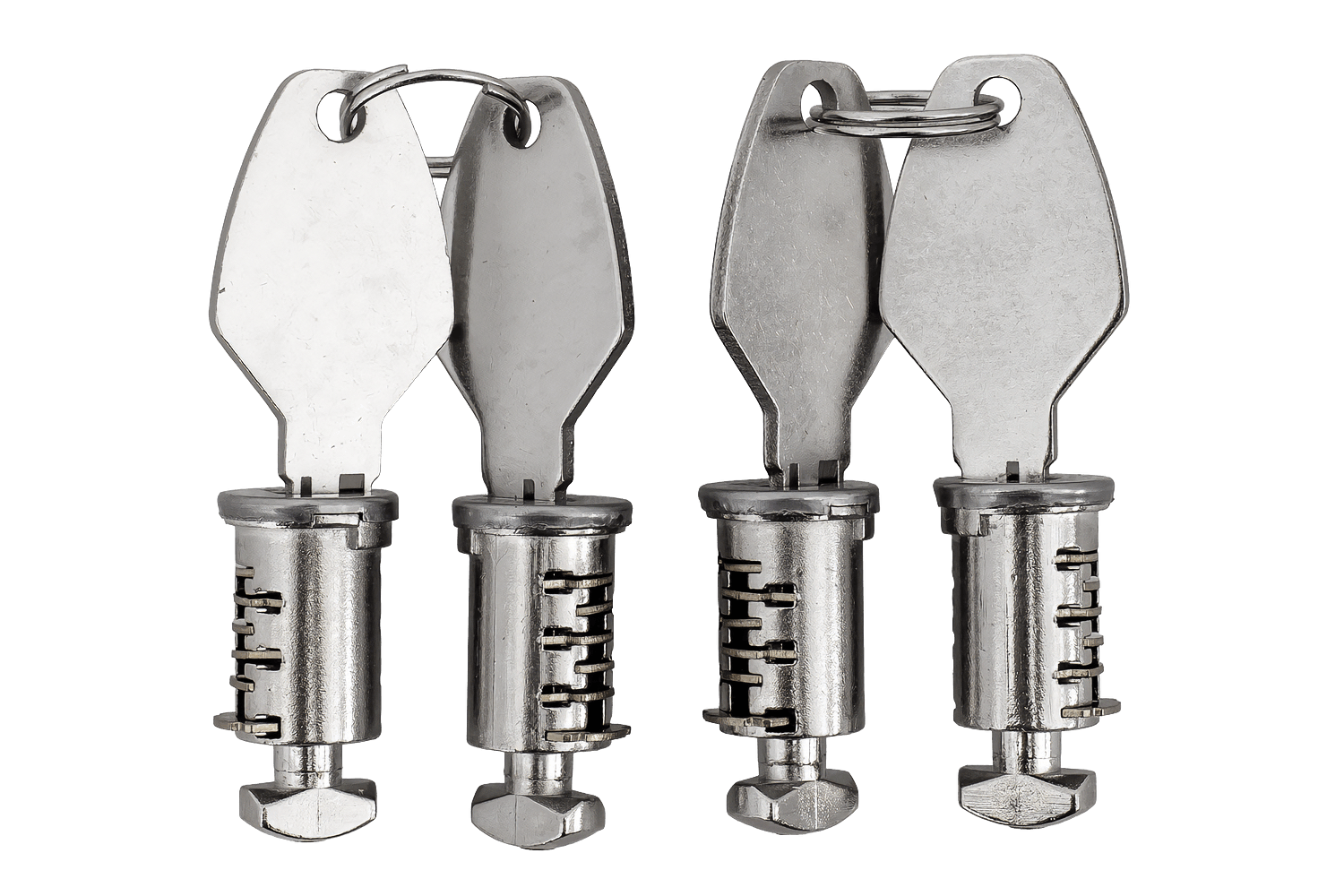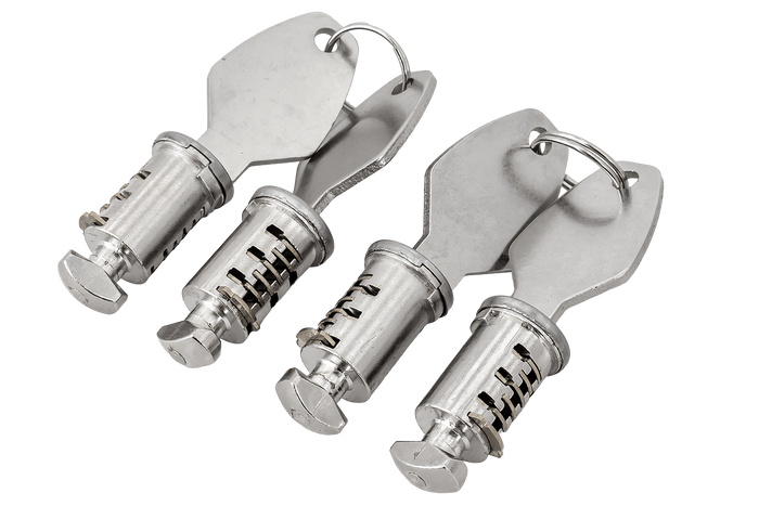 Die Virgo-Dachgepäckträgerschlösser umfassen vier Schlösser und vier passende Schlüssel und bieten so effektiven Schutz vor unbefugtem Zugriff. Das Set ermöglicht die gleichzeitige Sicherung aller Befestigungspunkte und erhöht dadurch die Sicherheit der transportierten Ladung.