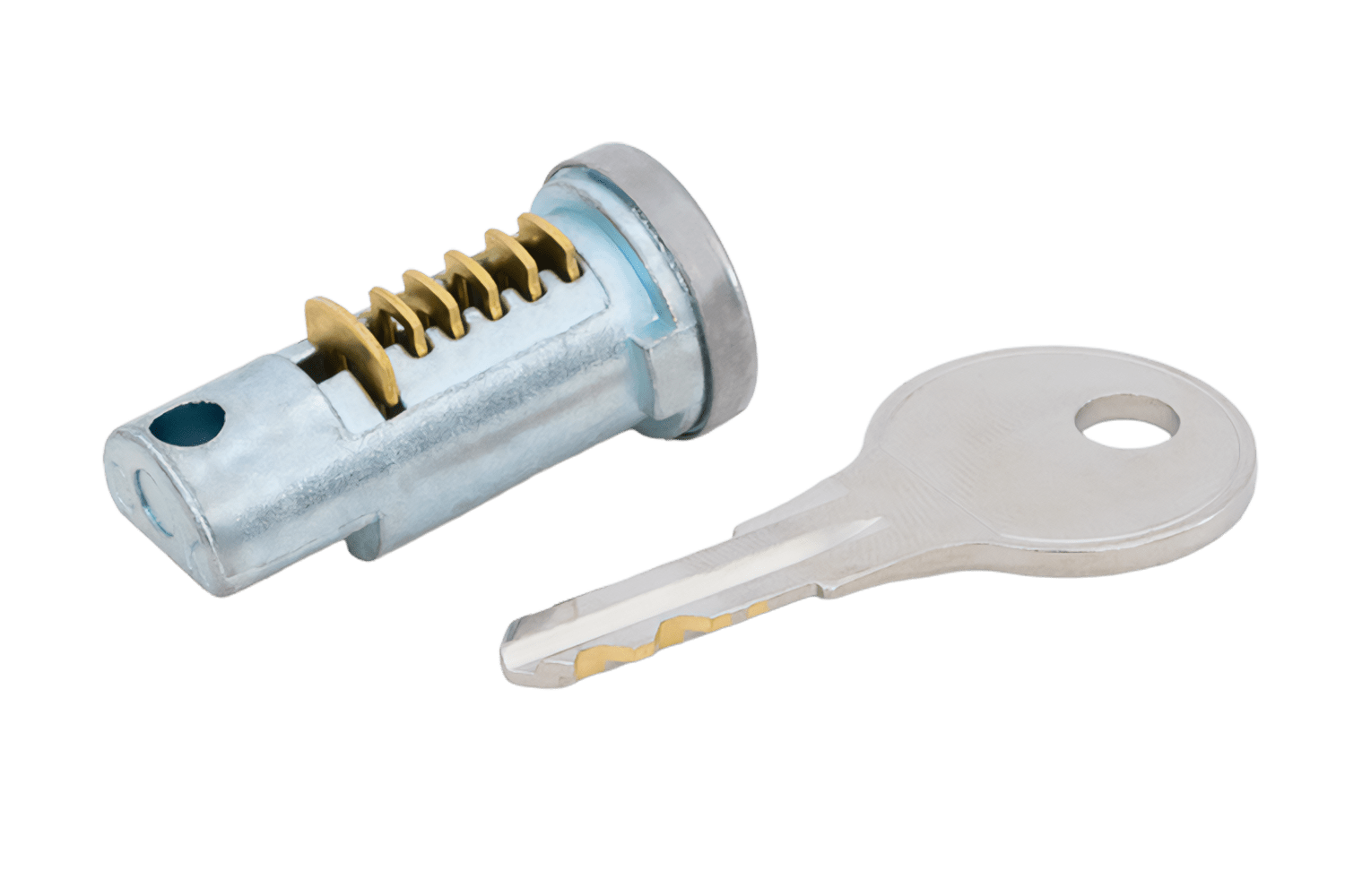 Set bestehend aus einem Schloss und einem Schlüssel mit der gleichen Nummer zur Sicherung der Fahrradplattformen Inter Pack Trio und Quattro.