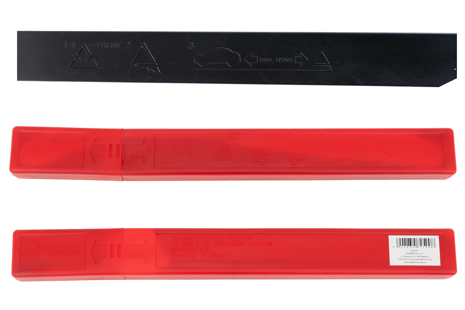 Ein Warndreieck ist für jedes Fahrzeug unverzichtbar und dient dazu, in Notsituationen einen Parkplatz zu markieren. Es besteht aus leichtem, aber robustem Kunststoff und wiegt nur ca. 380 g , wodurch es sich leicht verstauen und transportieren lässt. Dank seiner dünnen, stabilen Füße steht das Dreieck auch auf unebenem Untergrund sicher.