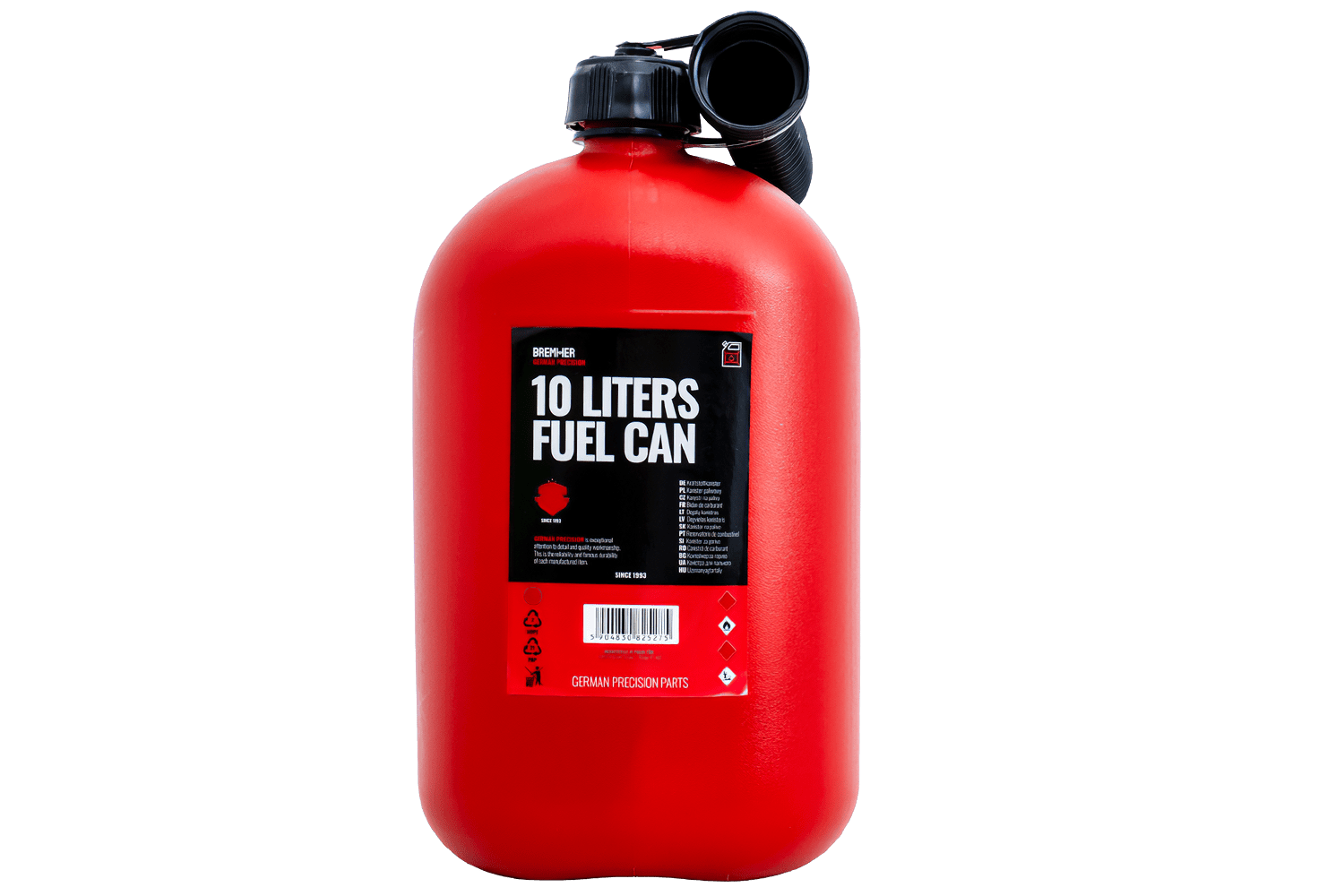 • Dieser 10-Liter-Kunststoffkanister aus robustem HDPE dient zur Aufbewahrung und zum Ausgießen von Kraftstoff. Ausgestattet mit einem komfortablen Griff und einem flexiblen Trichter für einfaches Ausgießen, ermöglicht die EU-Zulassung einen sicheren Krafts
