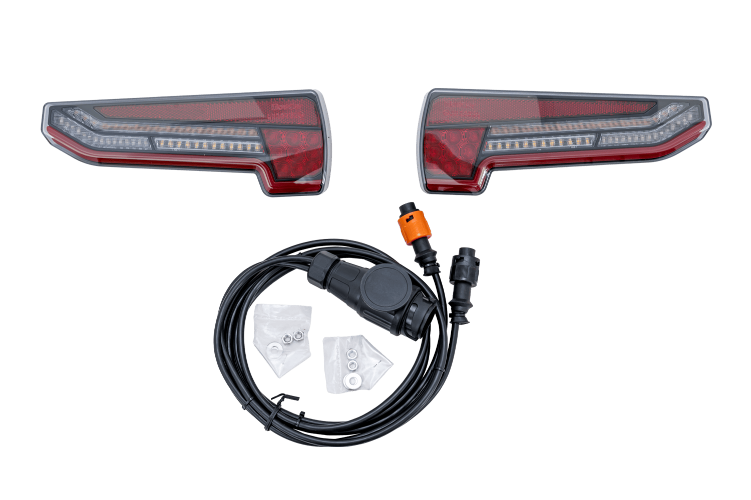 - Komplettes Set aus LED-Lampen und Kabelbaum mit 13-poligem Stecker.