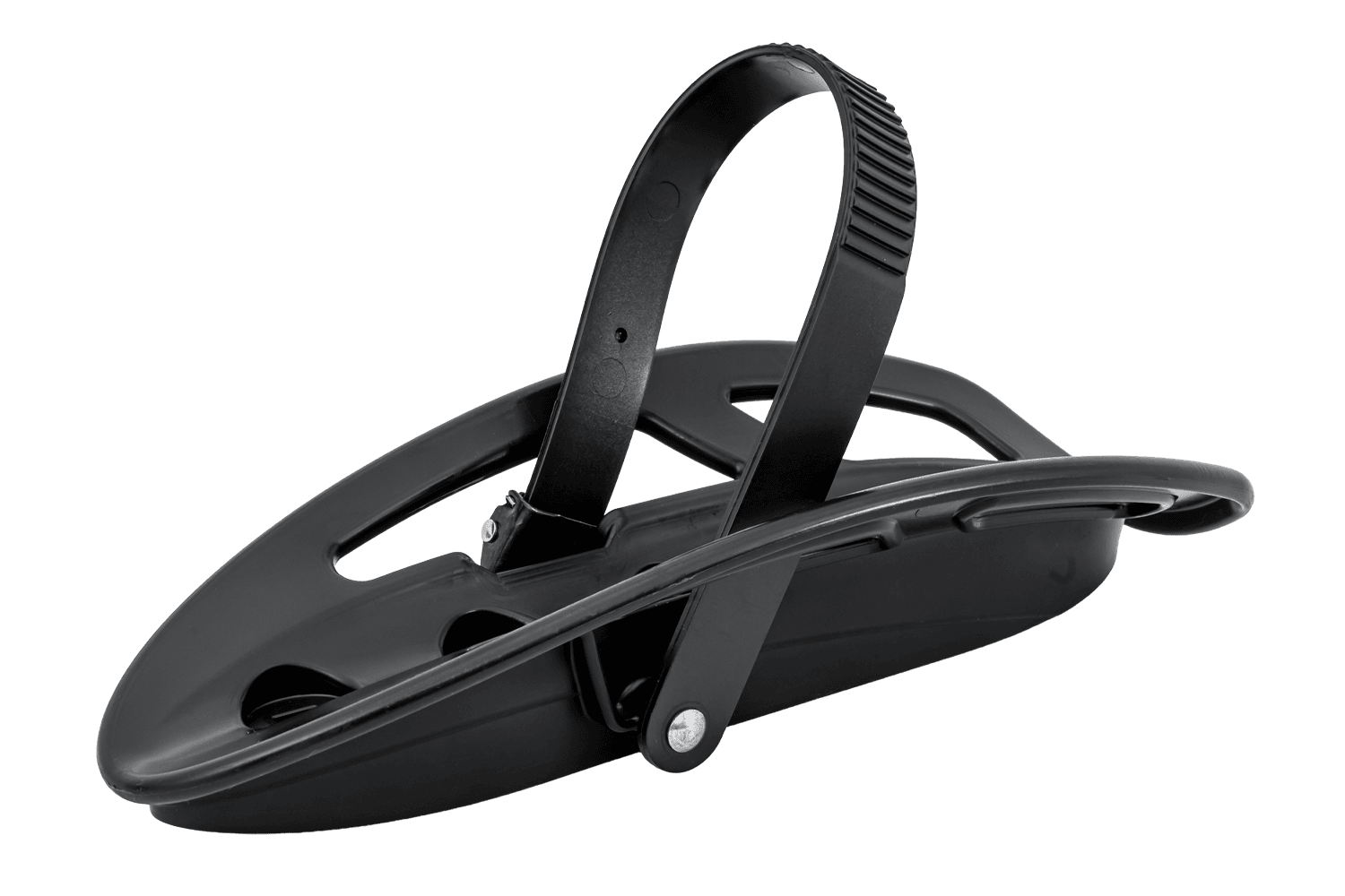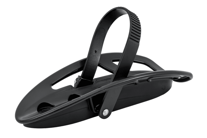 Radhalterung mit Gurt zur Befestigung des Rades an den am Anhängerkupplungs-Fahrradträgern von Peruzzo Parma.