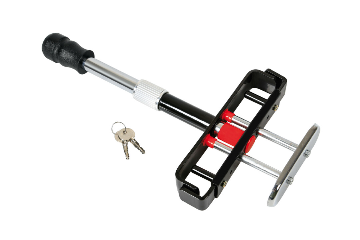 Das Diebstahlsicherungs-Pedalschloss ist eine effektive Diebstahlsicherung, die an den Pedalen montiert wird und die Betätigung von Bremse und Kupplung verhindert, wodurch das Fahrzeug fahruntüchtig wird. Dank des verstellbaren Breitenmechanismus passt das Schloss in die meisten Fahrzeuge – vom Kleinwagen bis zum größeren Modell.