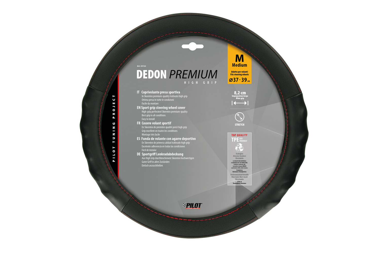 Der Dedon Premium Skeentex Lenkradbezug in Größe M (Durchmesser 37–39 cm) ist ein hochwertiger Bezug, der Fahrkomfort und -sicherheit erhöht. Er besteht aus ultraweichem, perforiertem Skeentex-Material , das auch bei langen Fahrten hervorragenden Halt bietet. Das ergonomische Design fördert einen sicheren Griff, beugt Ermüdungserscheinungen der Hände vor und verbessert die Fahrzeugkontrolle.