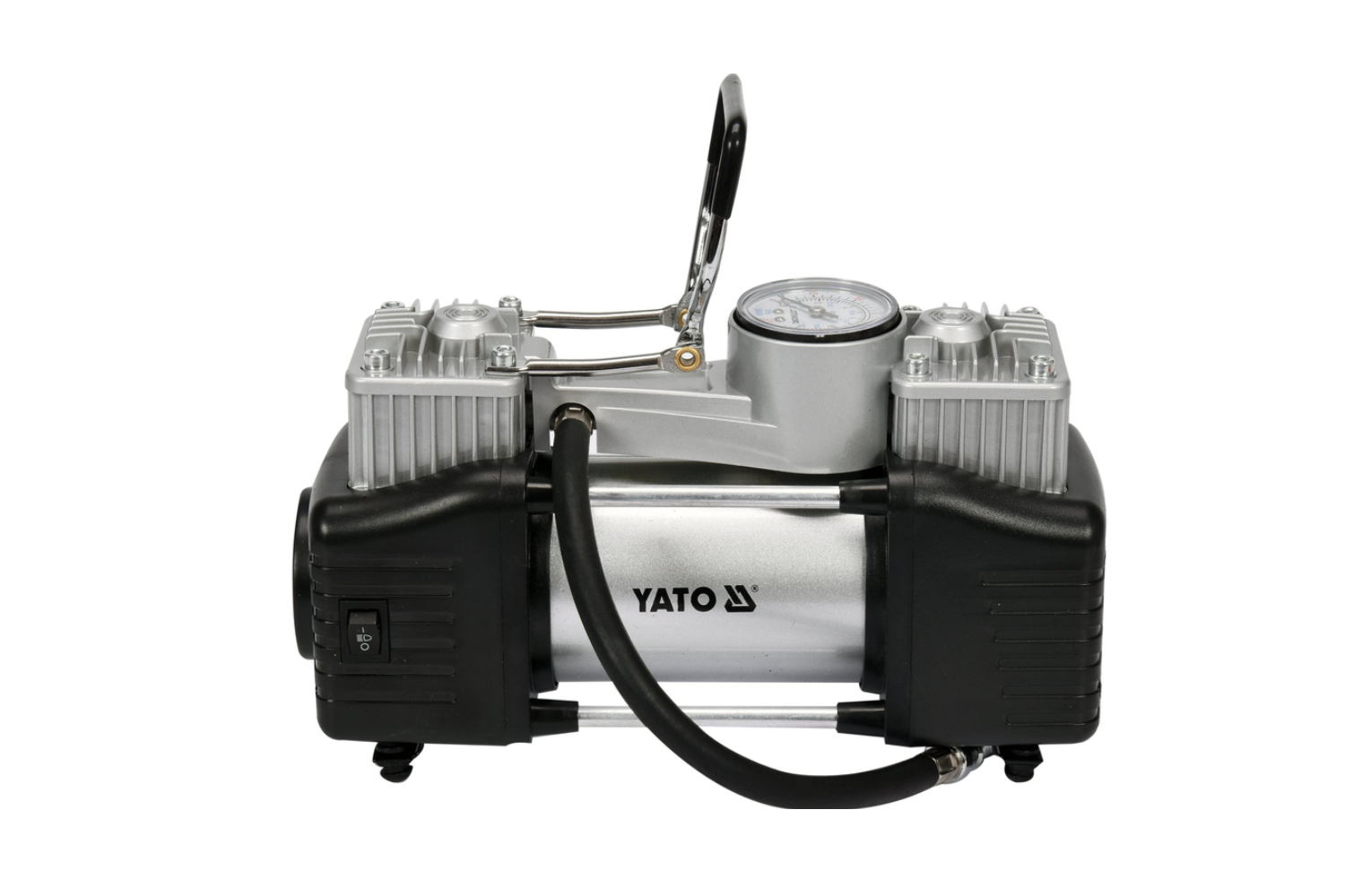Der YATO-Kompressor ist ein robustes und praktisches Werkzeug, das schnelles Aufpumpen der Reifen und hohen Bedienkomfort in jeder Straßensituation gewährleistet .
